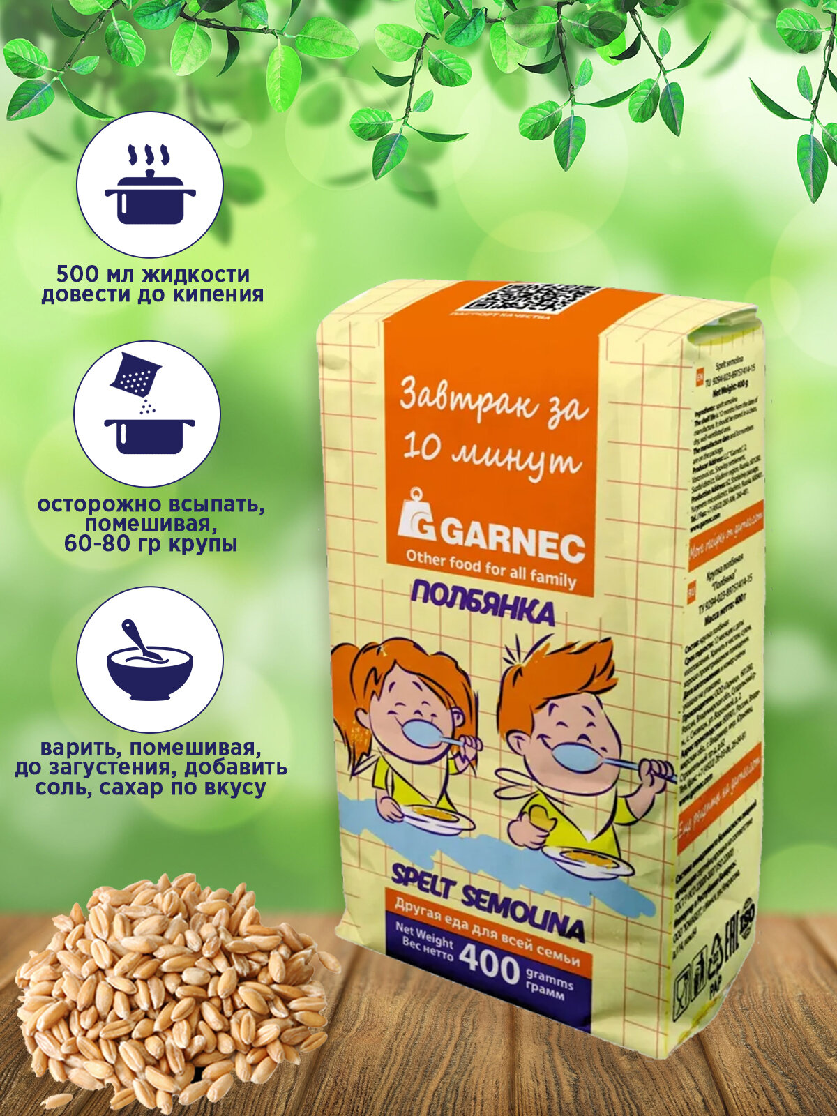 СохранитьКрупка манка полбяная (Полбянка) Garnec, 400 г (3 шт в наборе) интересное: