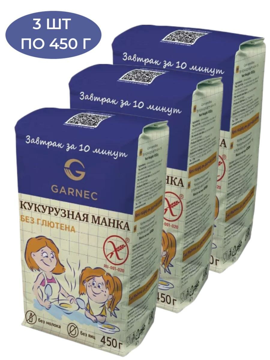 Купить Крупка Кукурузная манка без глютена Garnec, 450г (3 шт в наборе)