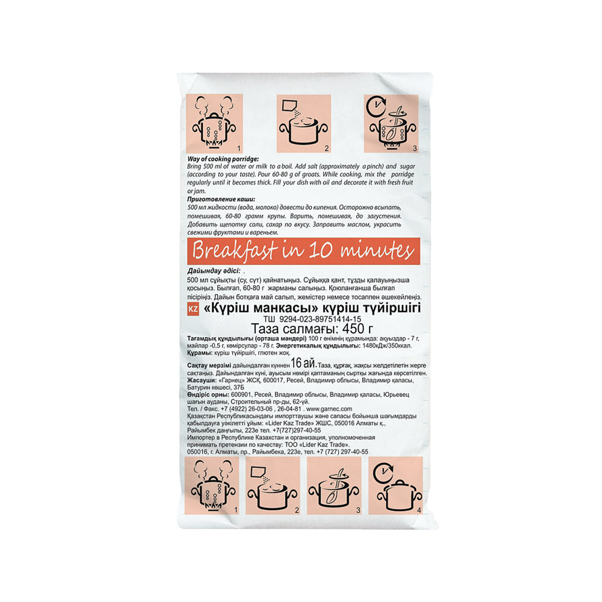 Крупка Garnec Гречневая манка, 450г (3 шт в наборе)