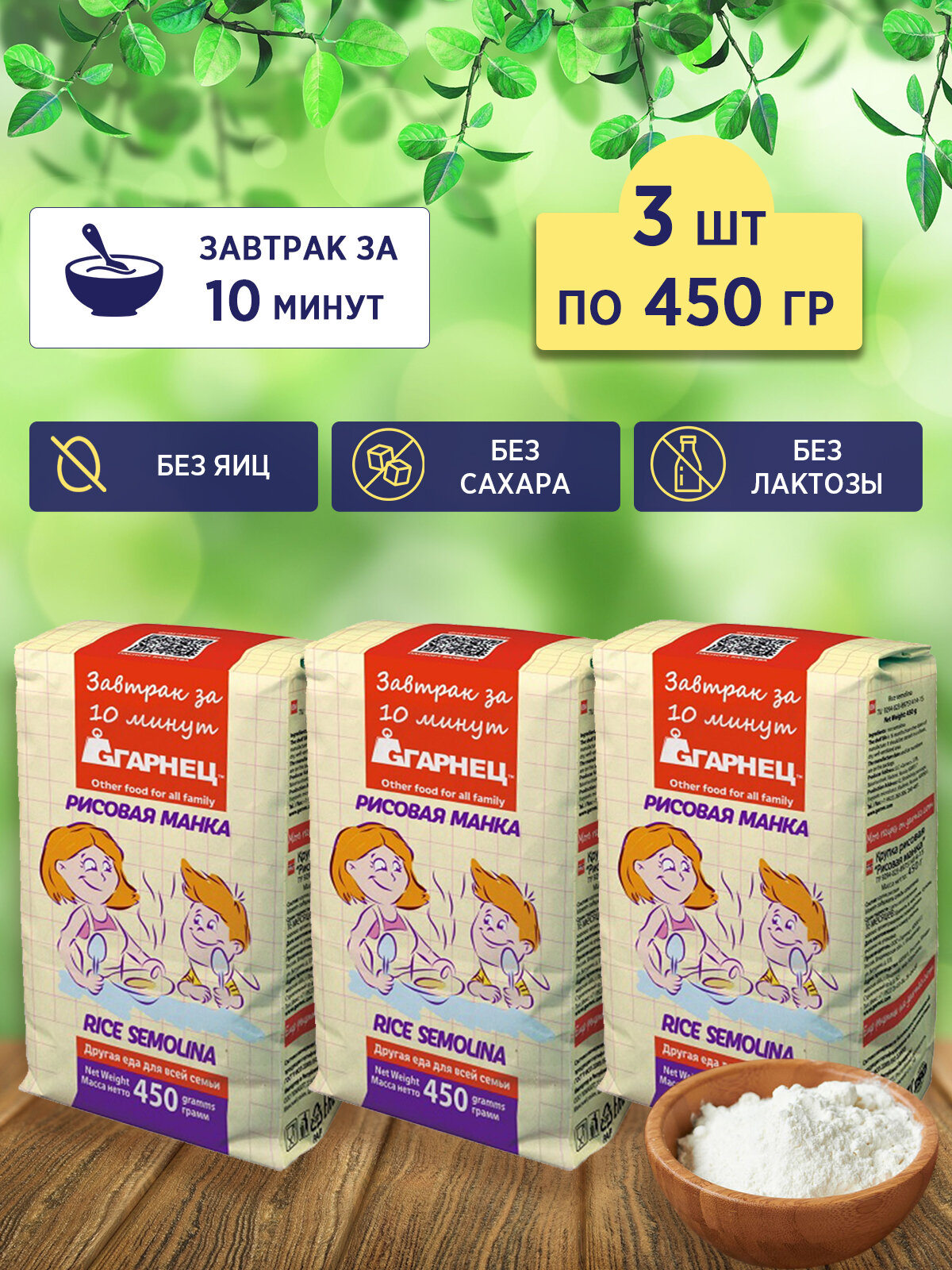 Крупка Гарнец Рисовая манка без глютена, 3 шт по 450 гр, Garnec
