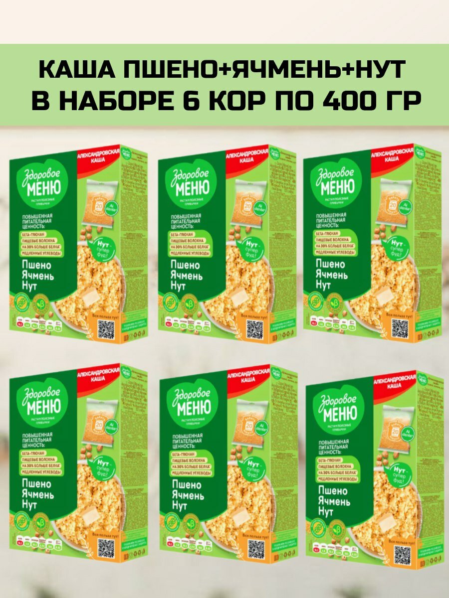 Александровская каша Здоровое меню пшено ячмень нут 6 коробок по 400 грамм интересное: