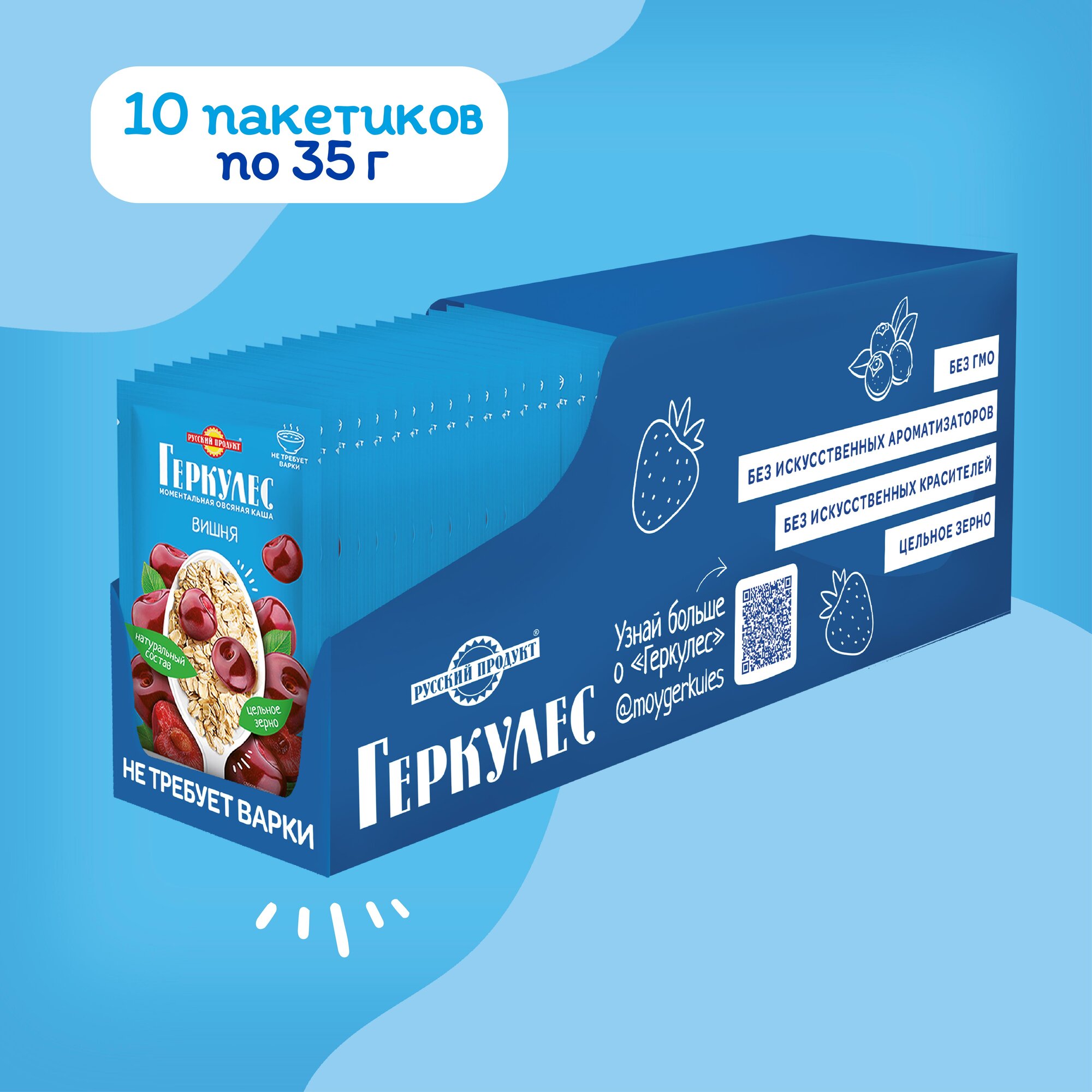 Овсяная каша момент Геркулес с вишней 35г/10шт интересное: