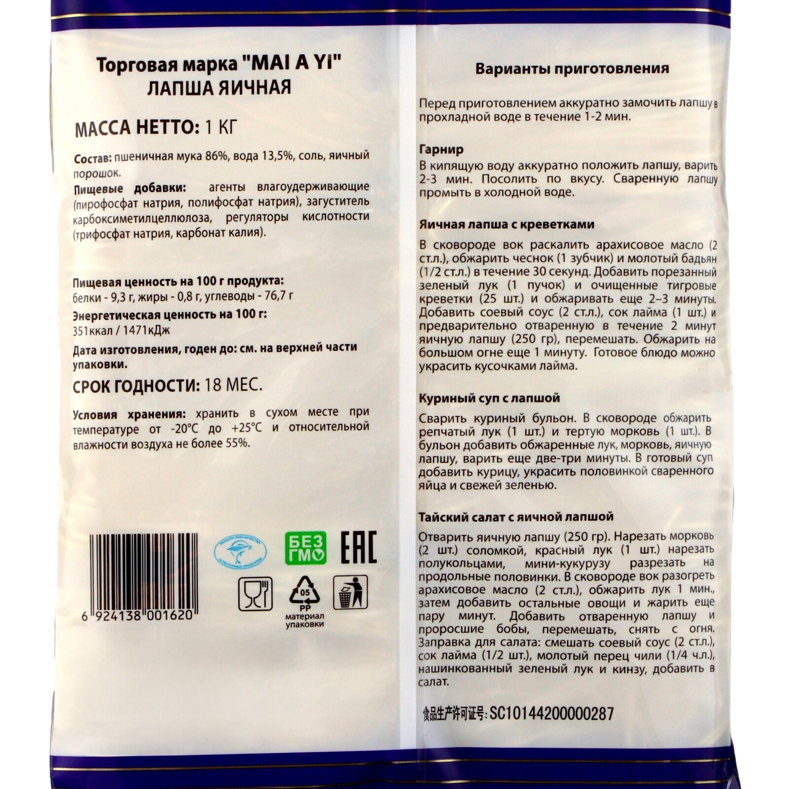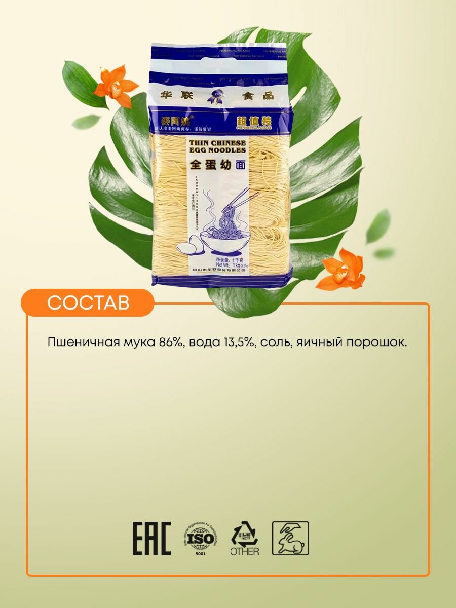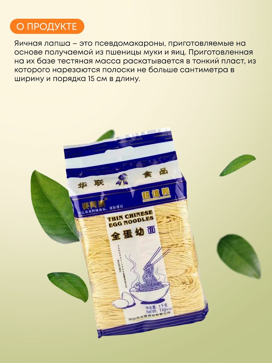 Китайская яичная лапша Mai A Yi, 1 кг интересное: