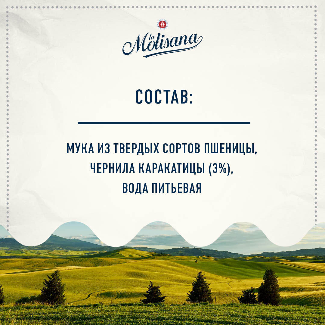 | Состав | Мука из твердых сортов пшеницы, чернила каракатицы (3%), вода. |