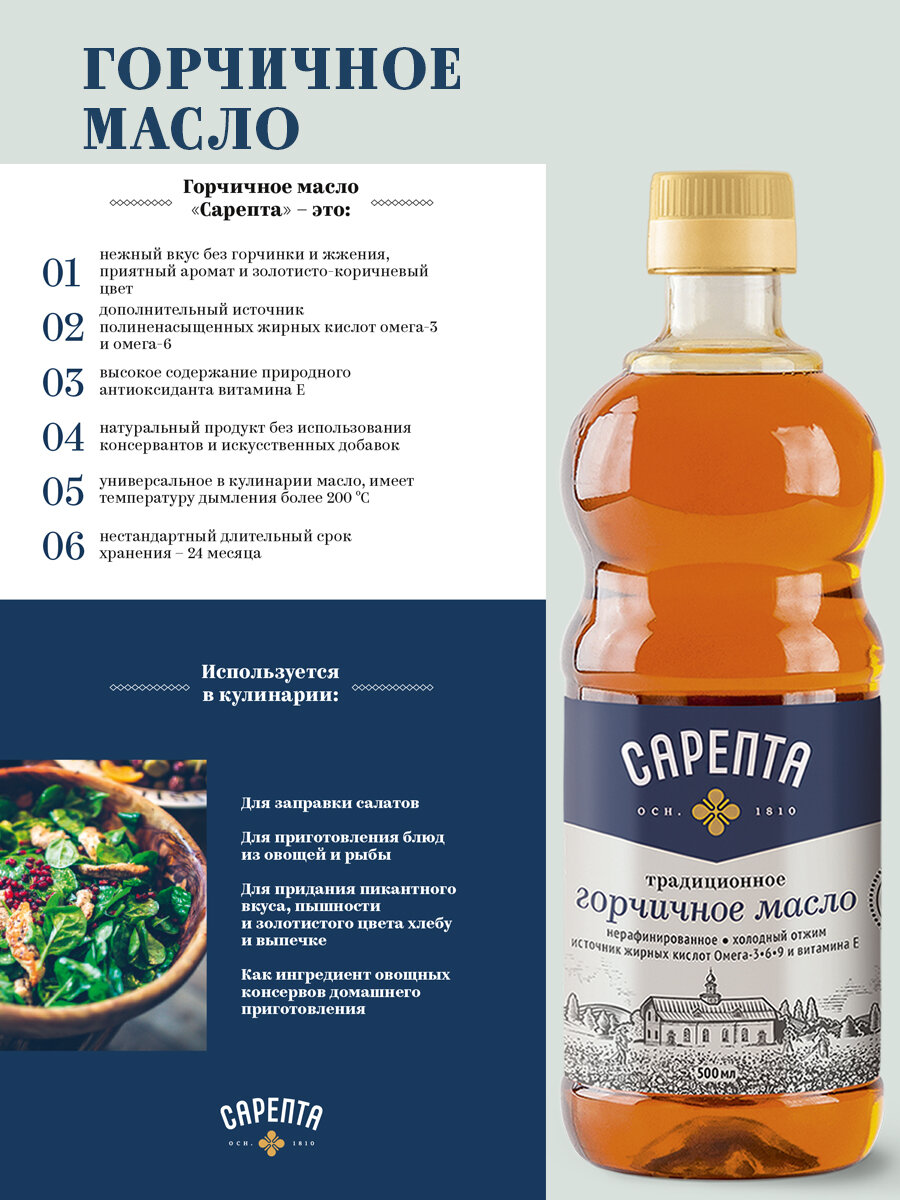 Горчичное масло (500 мл) Сарепта Традиционное, нерафинированное, коричневое, 500 мл -1 бутылка