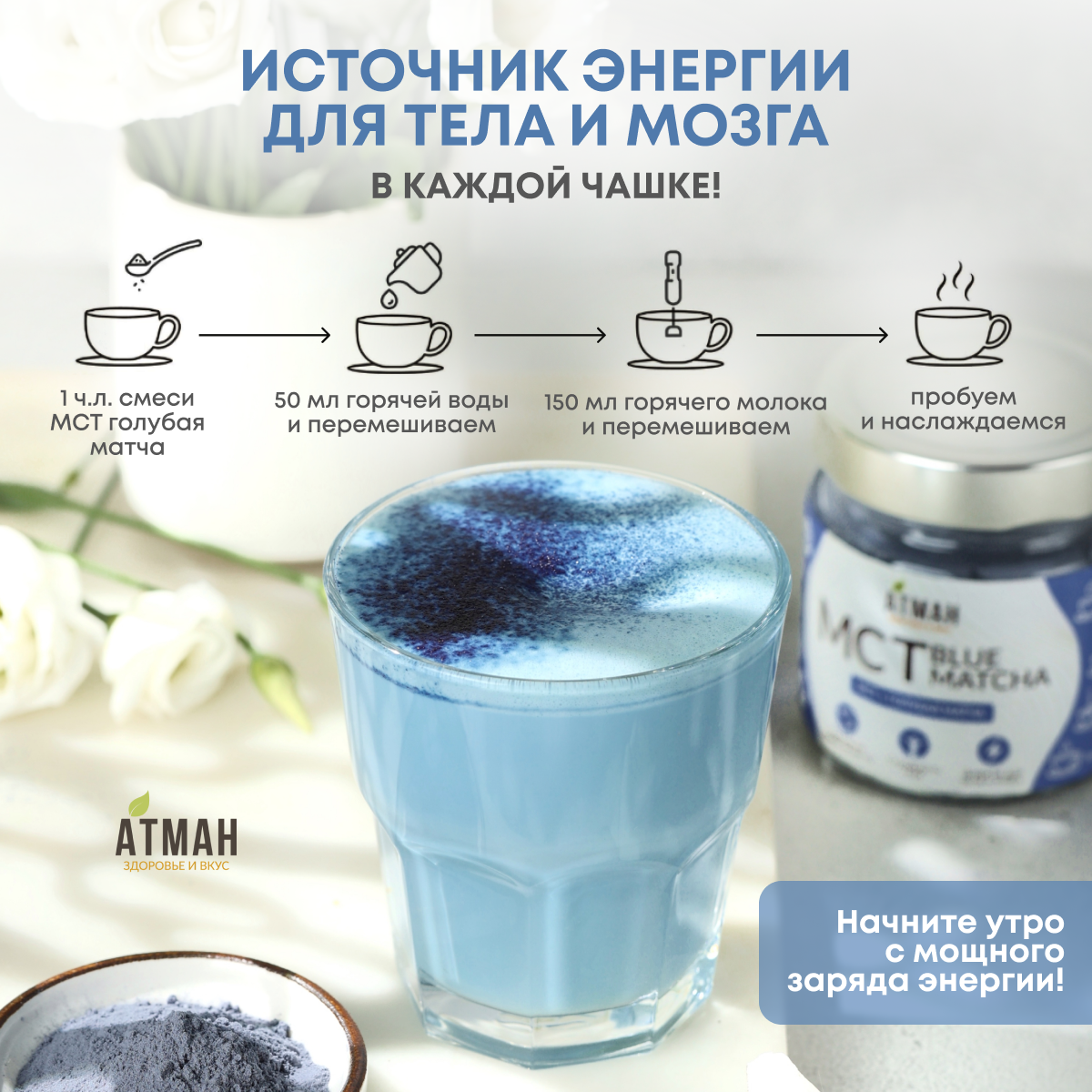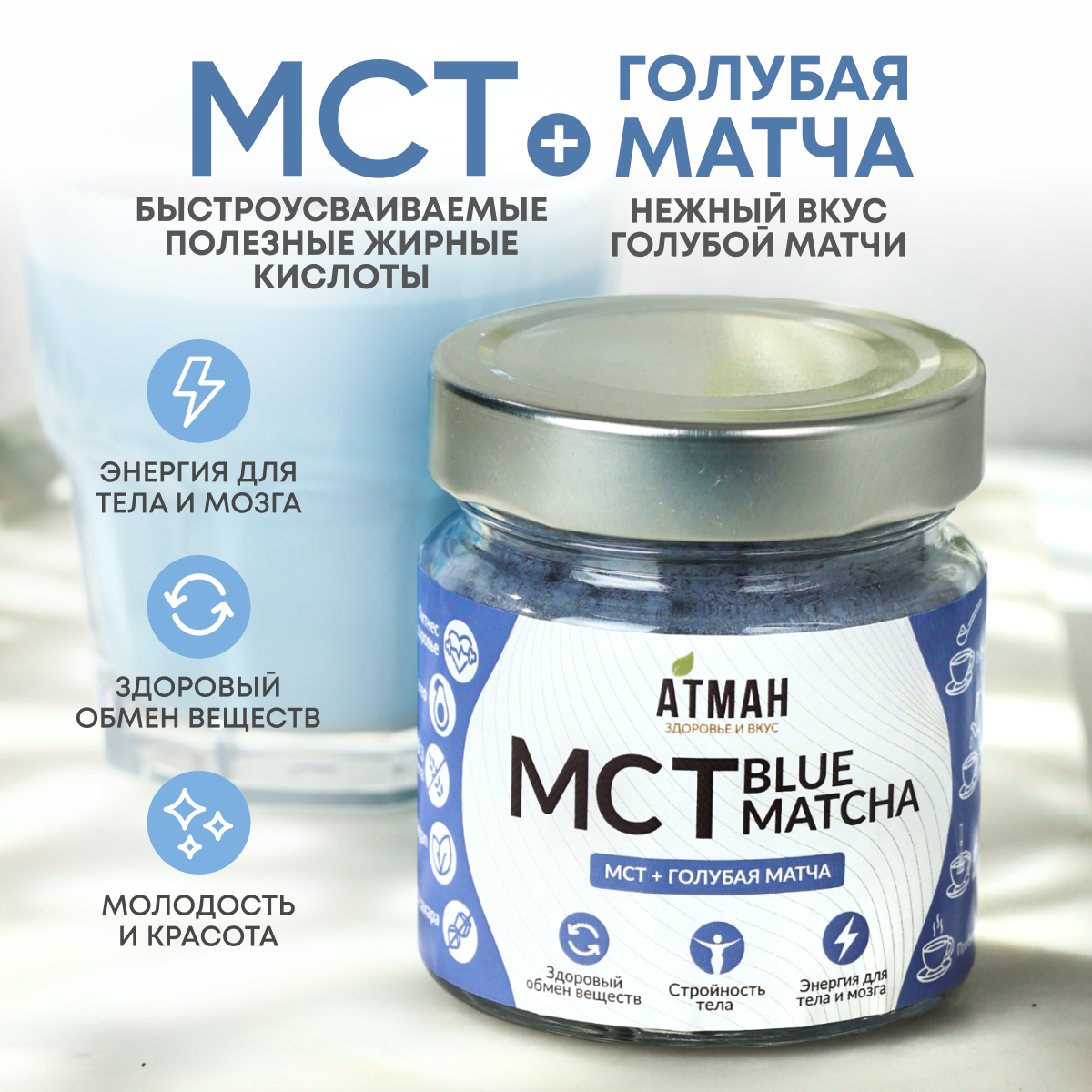 Чай голубая матча, мини версия латте суперфуд 40 гр, АТМАН