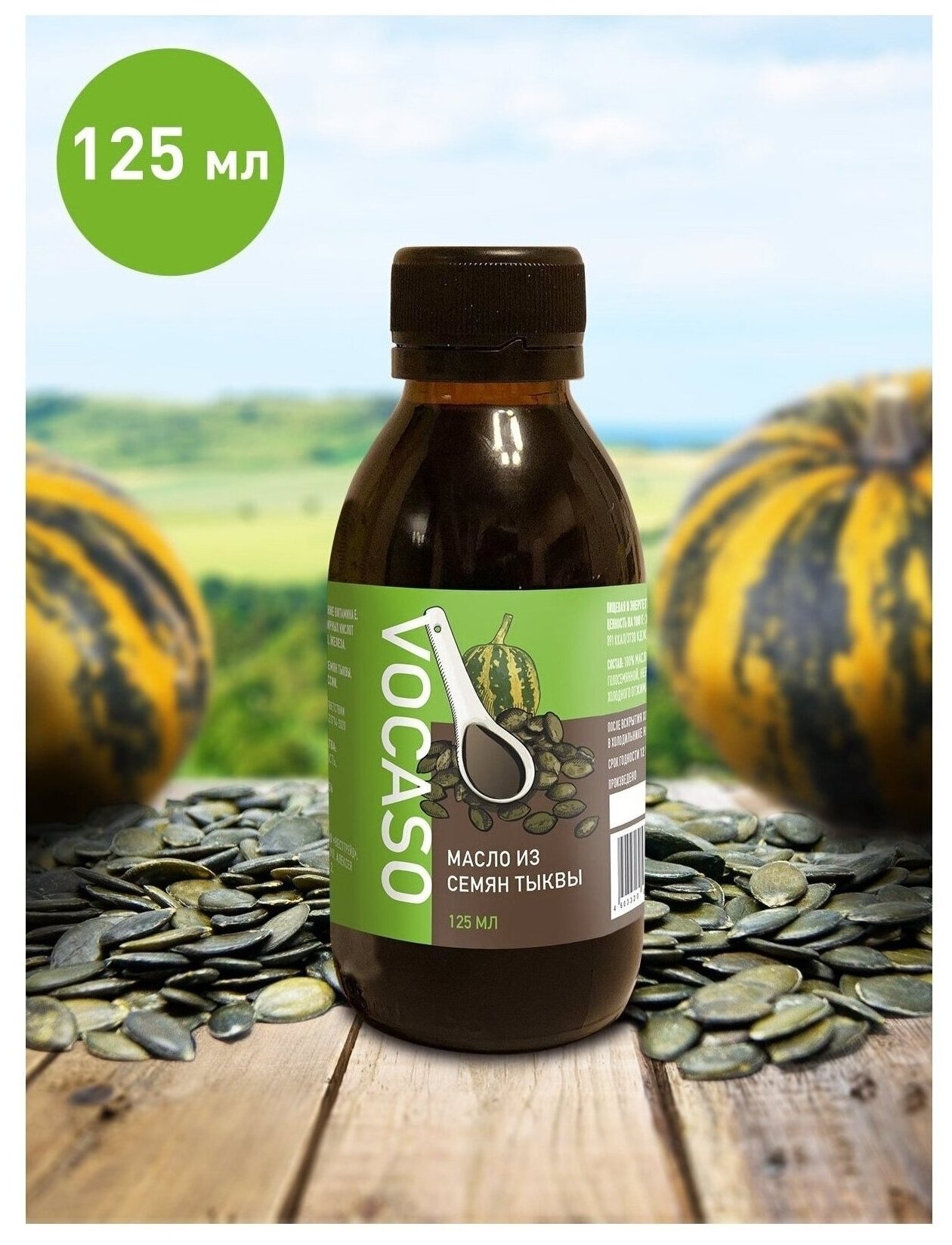 Масло из семян тыквы 125 мл, первого холодного отжима, нерафинированное VOCASO интересное:
