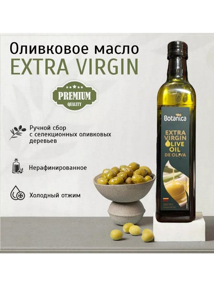 Масло оливковое нерафинированное Extra Virgin, холодный отжим Botanica, 500мл