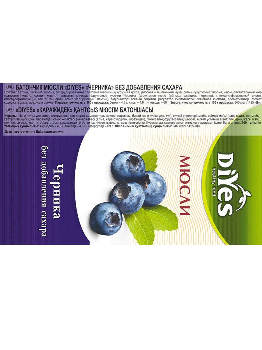 Купить Батончик мюсли "DiYes" Черника без сахара 25 г / 36 шт / веган