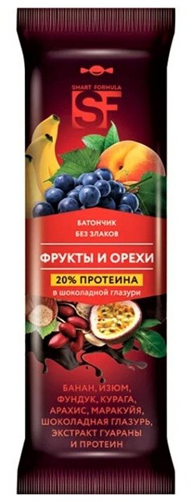 Батончик фруктовый KDV Smart Formula Фрукты и орехи без злаков и сои, 15 шт по 40 г интересное: