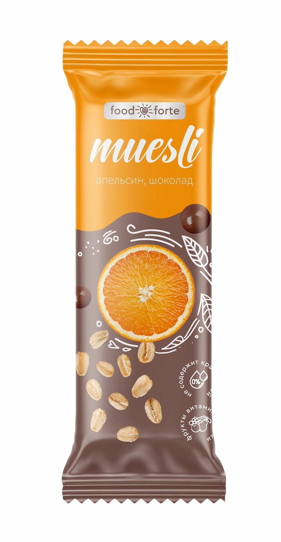 Купить Батончик мюсли FoodForte Апельсин в шоколаде 50г