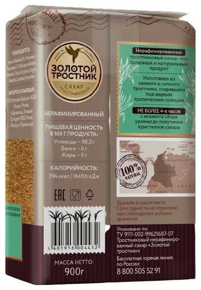 Сахар "Золотой тростник" 900 г * 5 штук интересное: