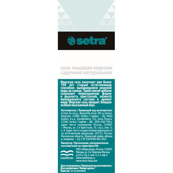 Соль морская Setra натуральная помол №2, пачка, 500 г интересное: