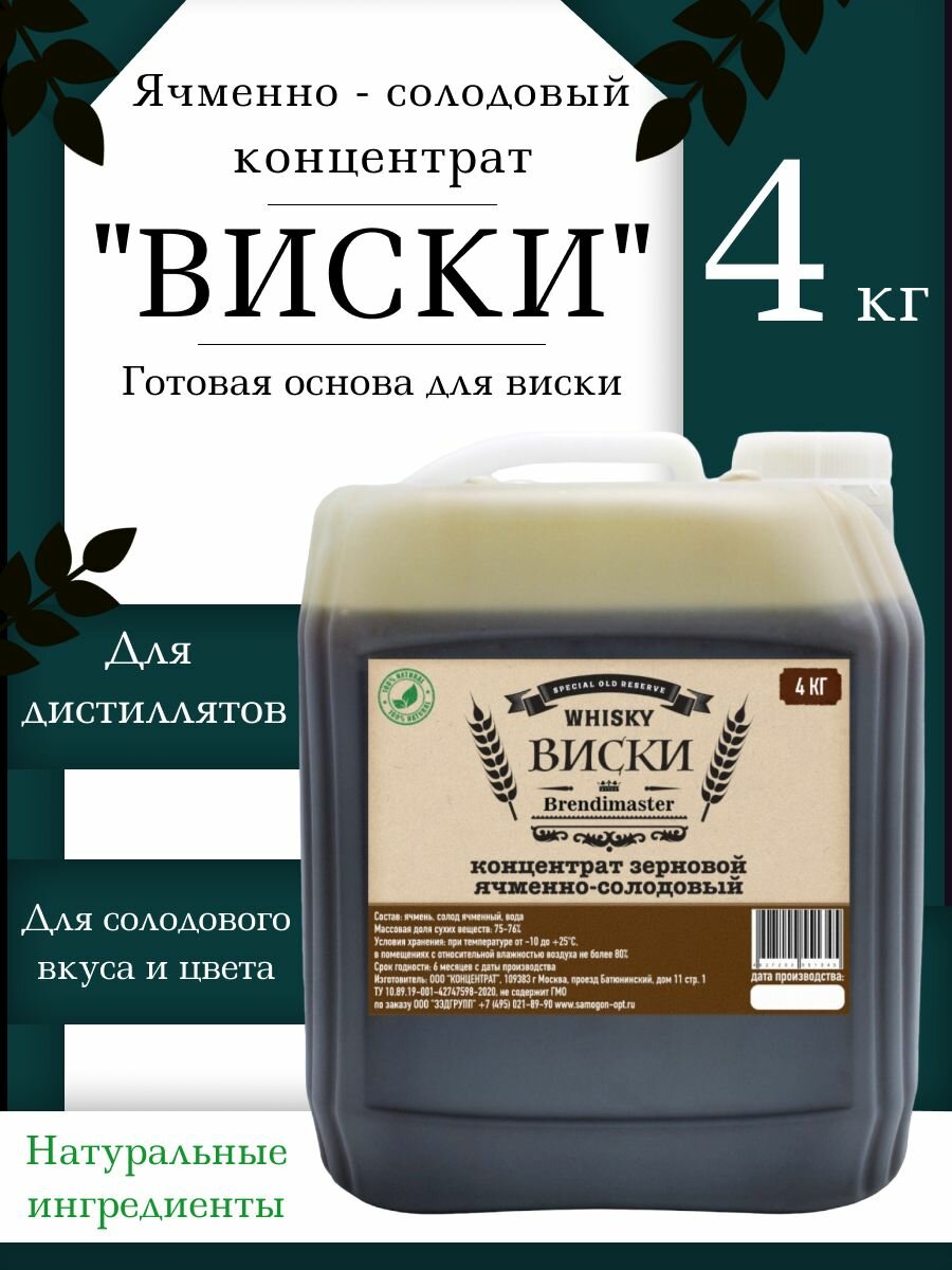 Солодовый концентрат Brendimaster "Виски", 4 кг интересное: