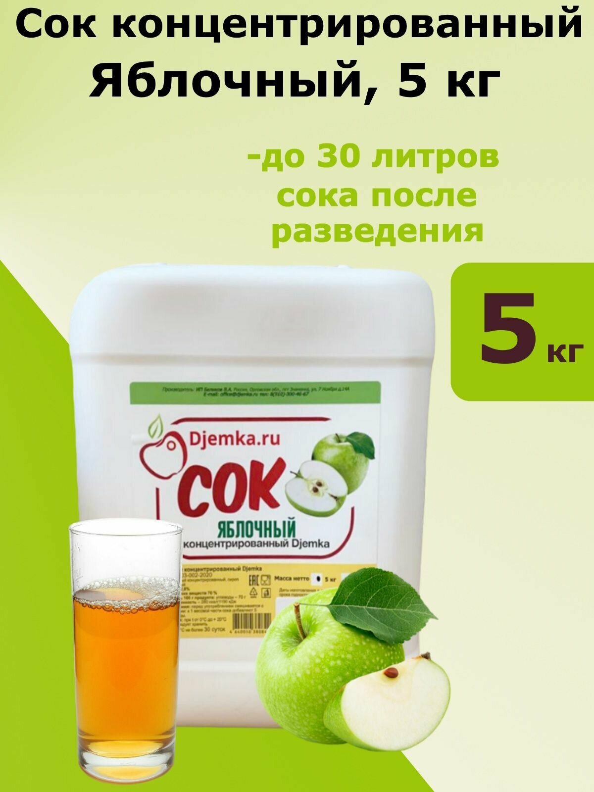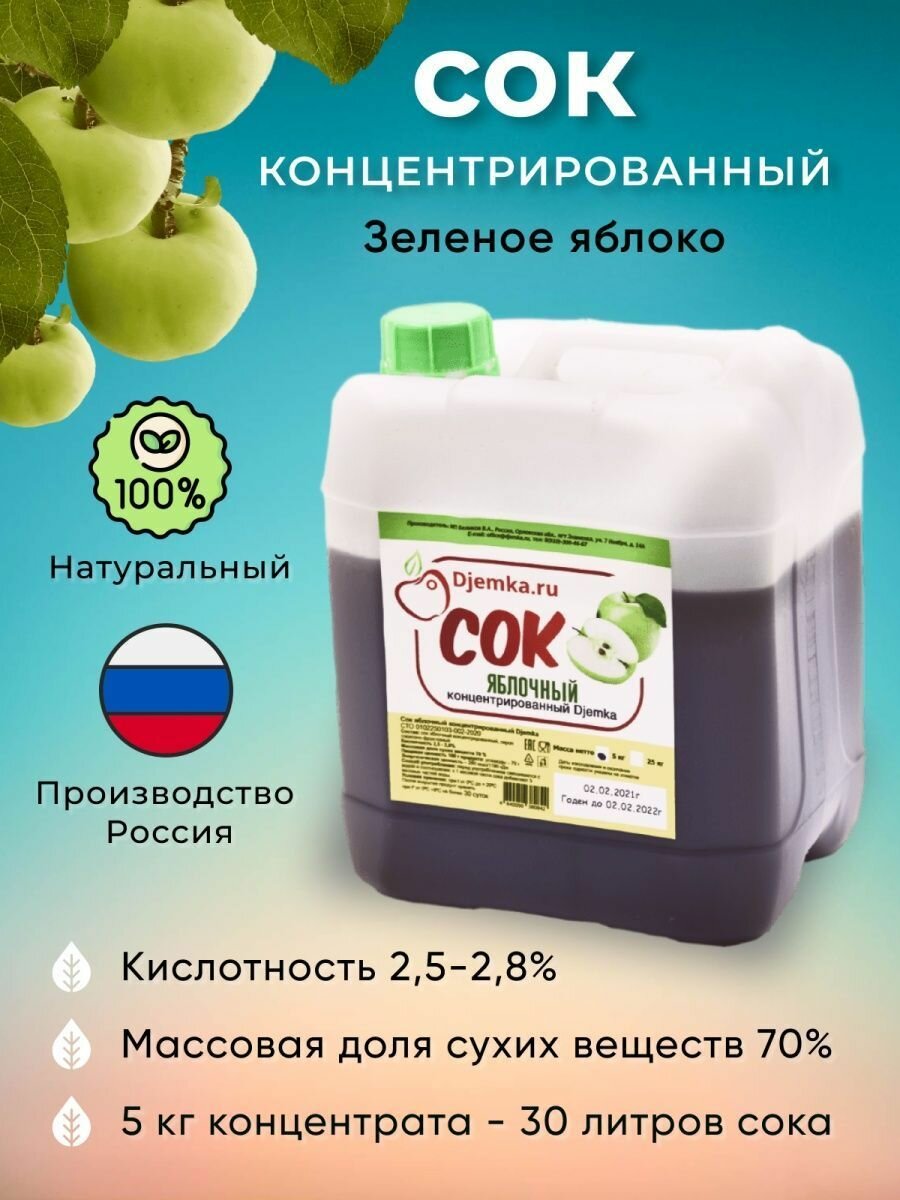 Сок Djemka.ru "Зелёное яблоко", 2,5%, концентрированный, в пластиковой канистре, 5 кг