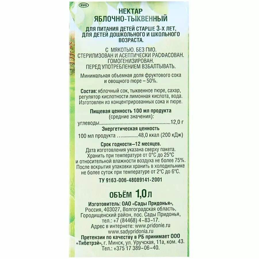 Сок «Сады Придонья» Тыква-яблоко восстанов.с мякотью без сах. 1л х 12 пак интересное: