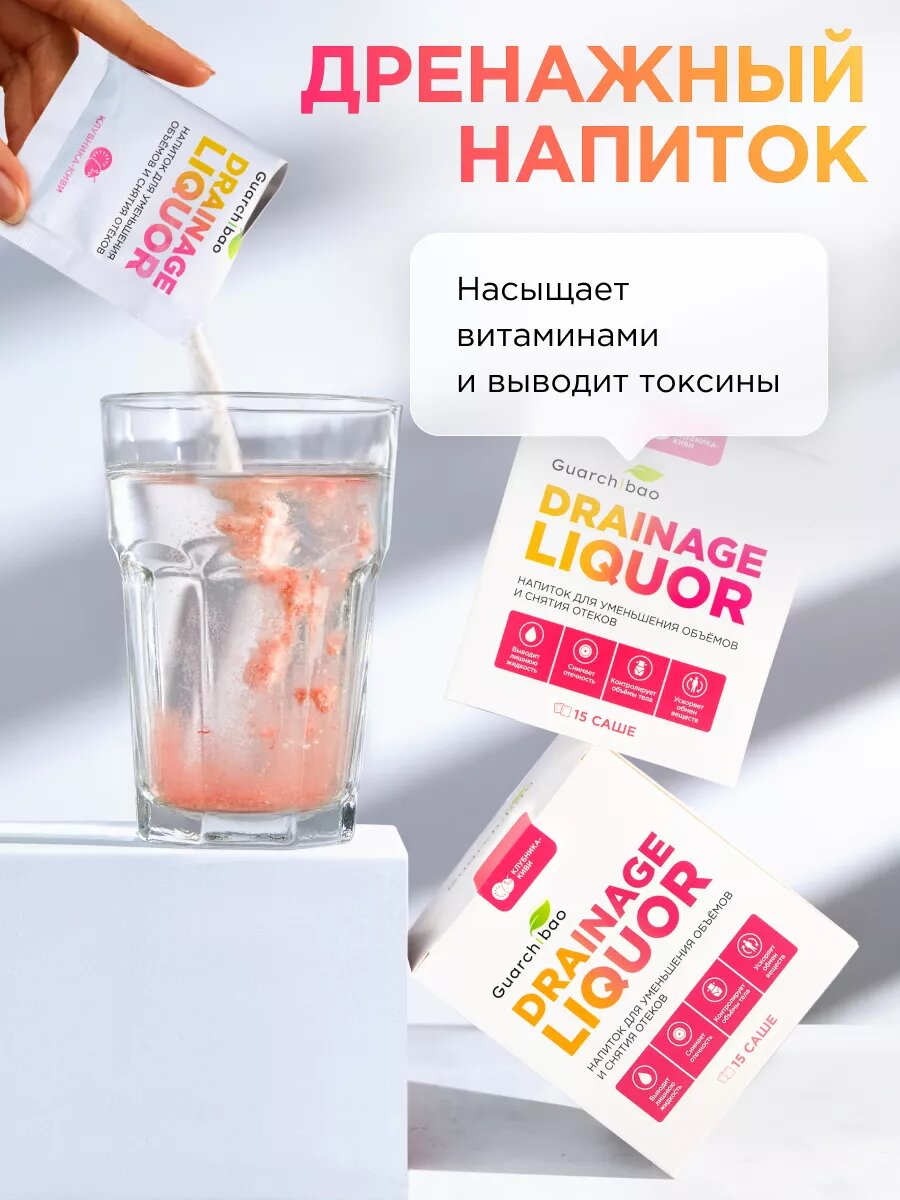 Дренажный напиток Guarchibao Drainage Liquor со вкусом Клубника-Киви для снятия отеков и уменьшения объемов, для похудения, 1 упаковка (15 саше)