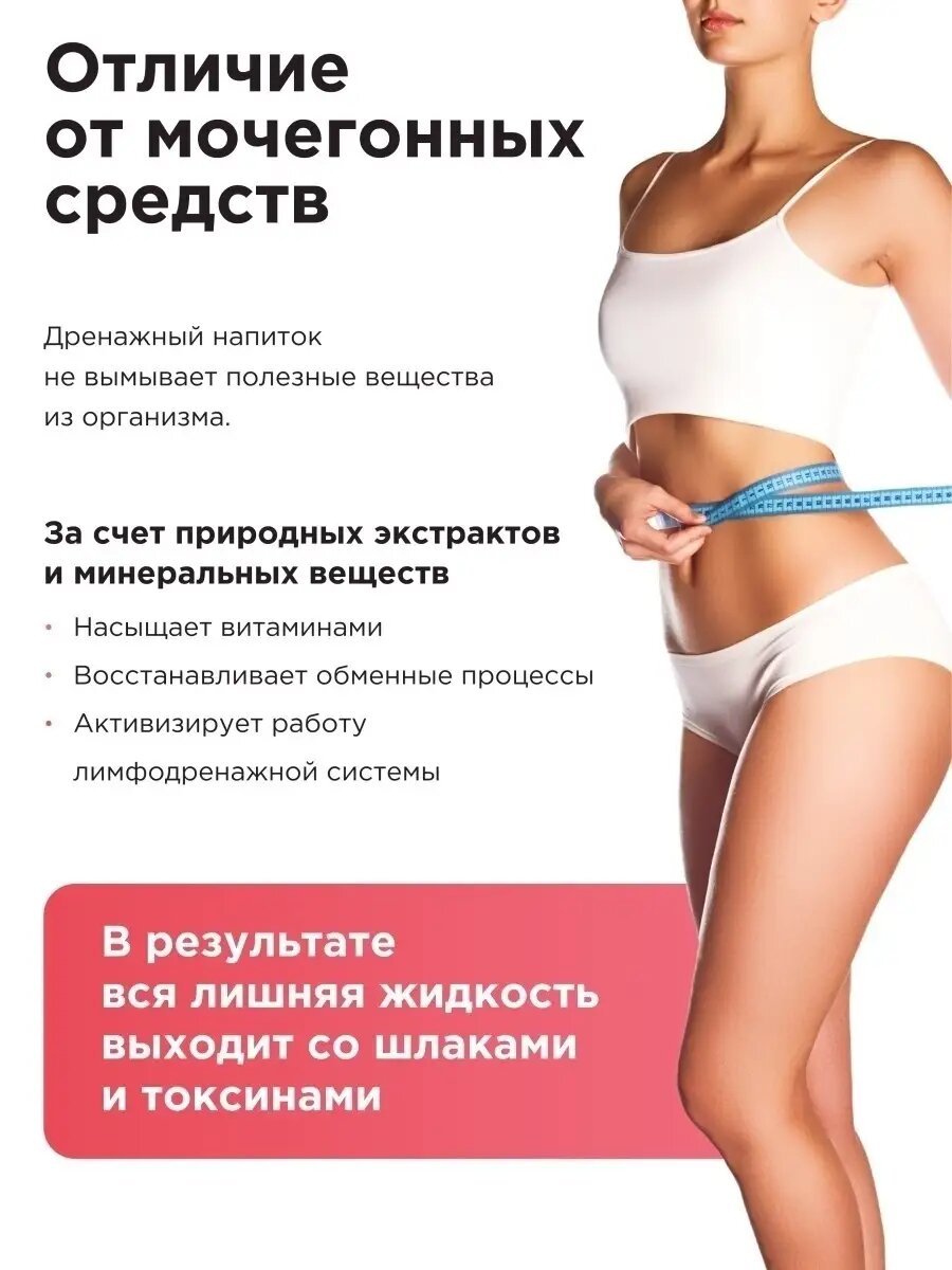 | Дополнительная информация | Для достижения эффективного результата, рекомендуется пропить курс, который составляет от 3-4 недель. В этот период важно поддерживать водный баланс и пить в среднем от 3-4 л воды в сутки. Как только вы восстановите нормальный питьевой режим, организм начнет выводить воду из подкожной жировой клетчатки. |
