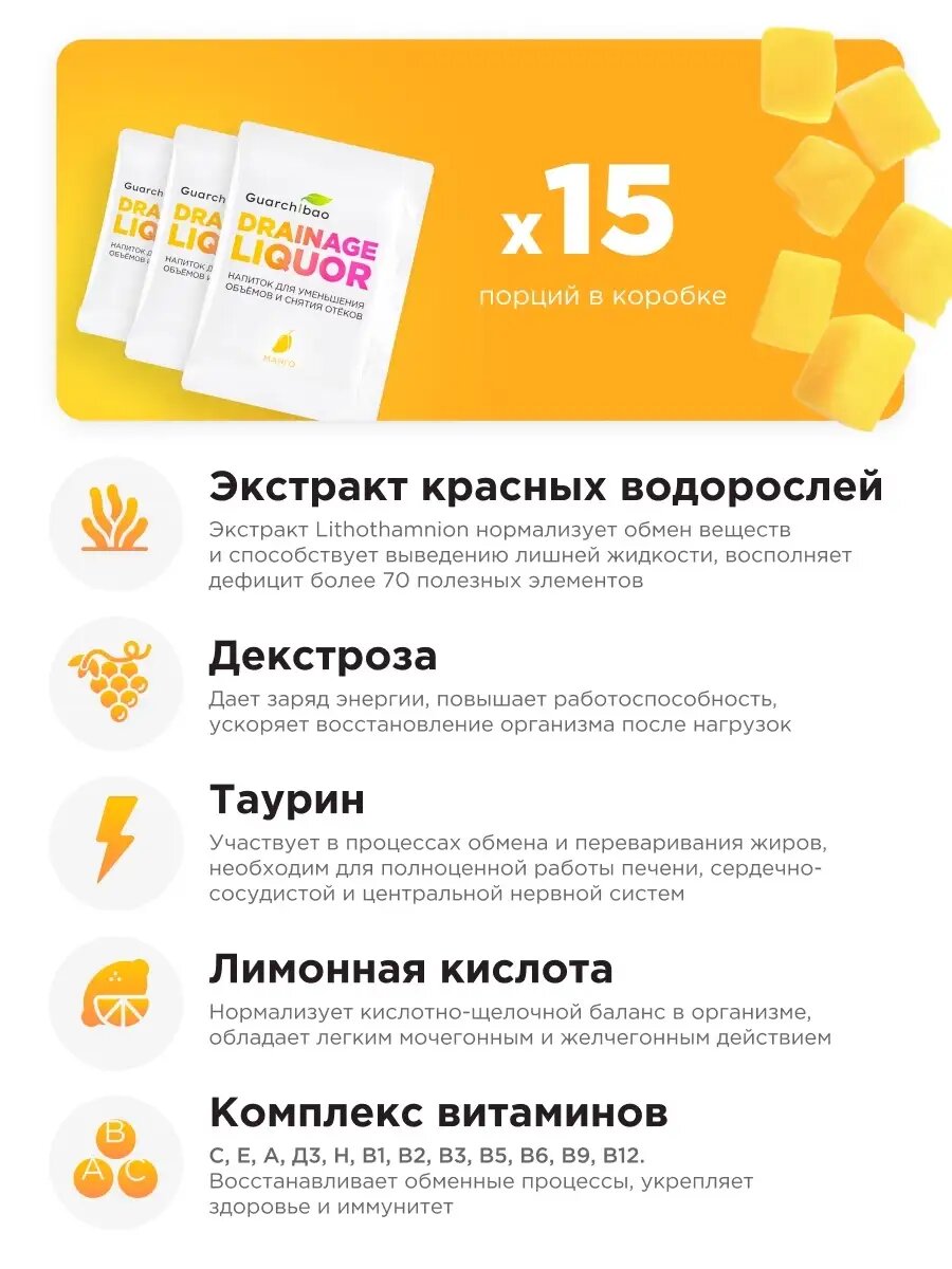 Дренажный напиток Guarchibao Drainage Liquor со вкусом Манго для снятия отеков и уменьшения объемов, для похудения, 2 упаковки (30 саше)