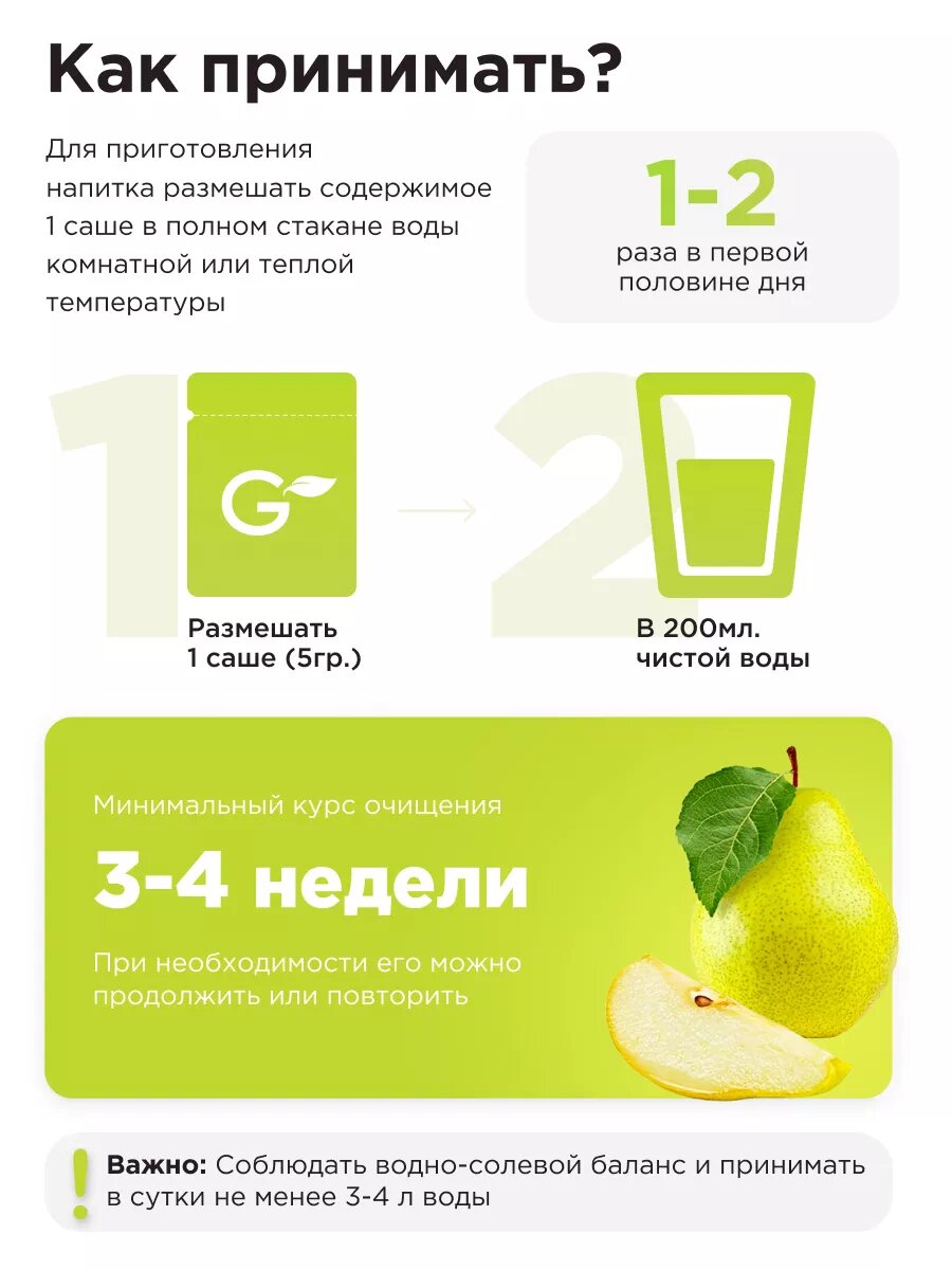 Купить Дренажный напиток Guarchibao Drainage Liquor со вкусом Груши для снятия отеков и уменьшения объемов, для похудения, 2 упаковки (30 саше)