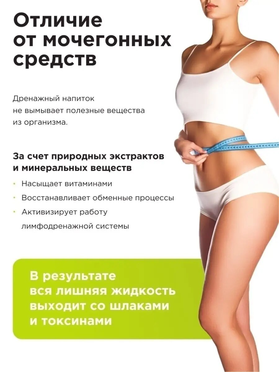 | Дополнительная информация | Для достижения эффективного результата, рекомендуется пропить курс, который составляет от 3-4 недель. В этот период важно поддерживать водный баланс и пить в среднем от 3-4 л воды в сутки. Как только вы восстановите нормальный питьевой режим, организм начнет выводить воду из подкожной жировой клетчатки. |