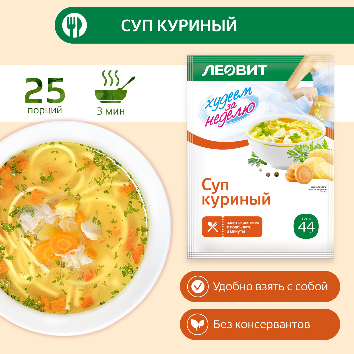 Купить Леовит Худеем За Неделю Суп куриный Первое обеденное блюдо 25 пакетов по 14 г.
