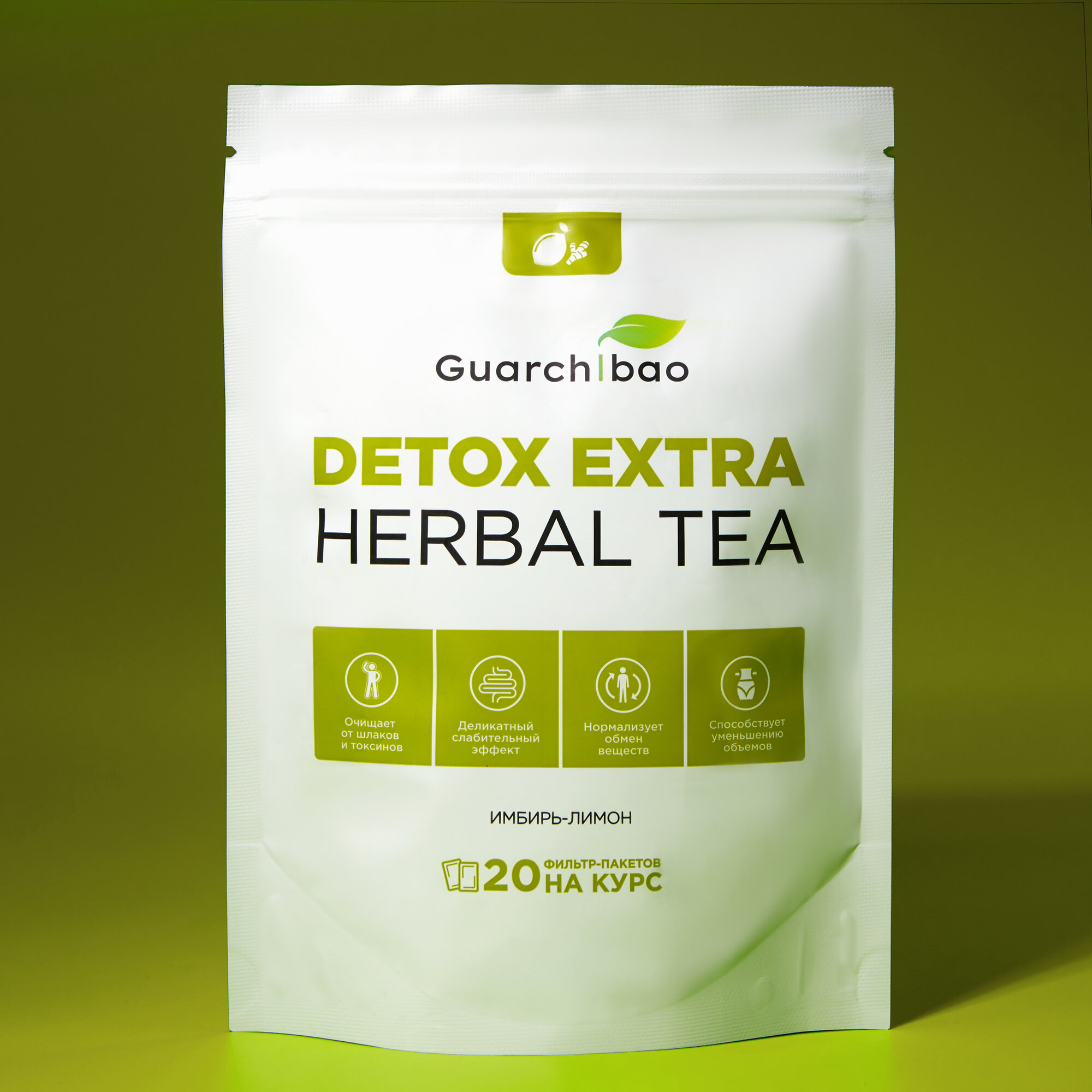 Купить Натуральный чай для похудения Guarchibao Detox Herbal Tea Имбирь Лимон. Детокс организма, деликатное очищение, улучшение пищеварения (20 пакетиков)