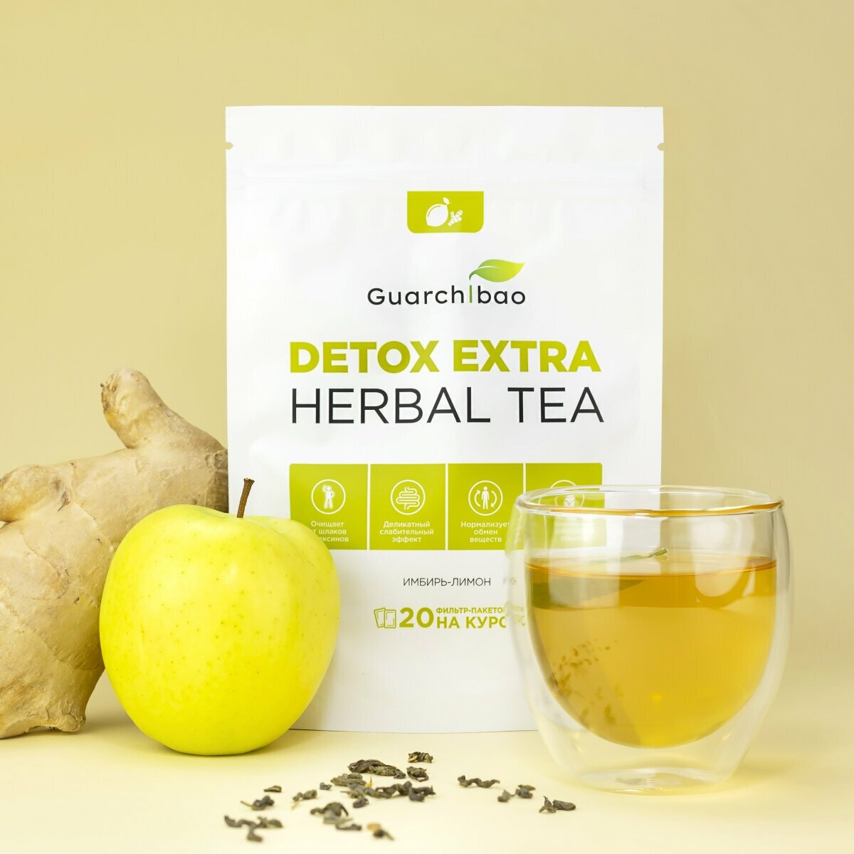 Натуральный чай для похудения Guarchibao Detox Herbal Tea Яблоко-Корица. Детокс организма, деликатное очищение, улучшение пищеварения (20 пакетиков)