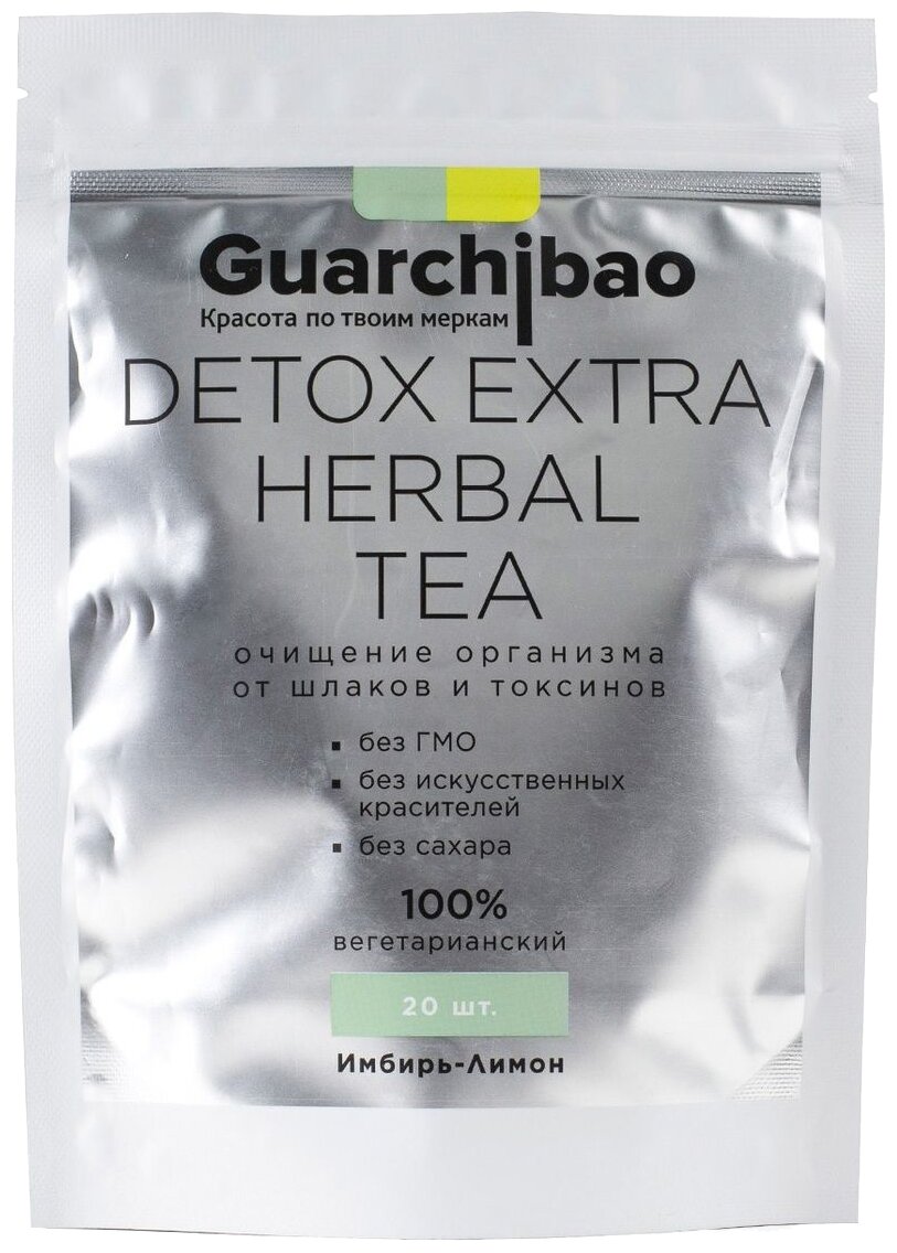 Чай Guarchibao Detox "Herbal Tea", Имбирь-лимон, для похудения, 20 фильтр-пакетов