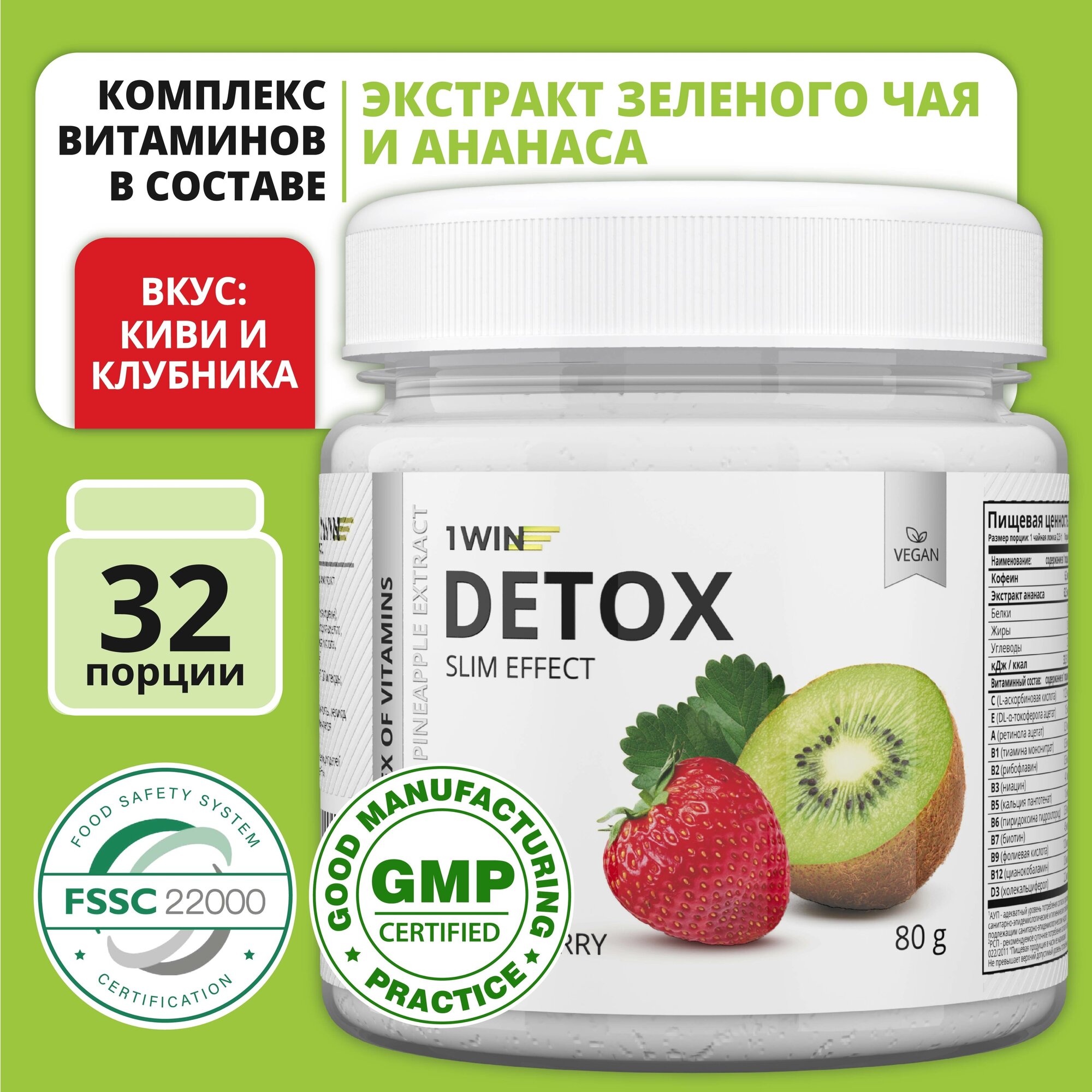 1WIN Детокс с экстрактом зеленого чая и ананаса Detox Slim Effect, Лесные ягоды, 32 порции интересное:
