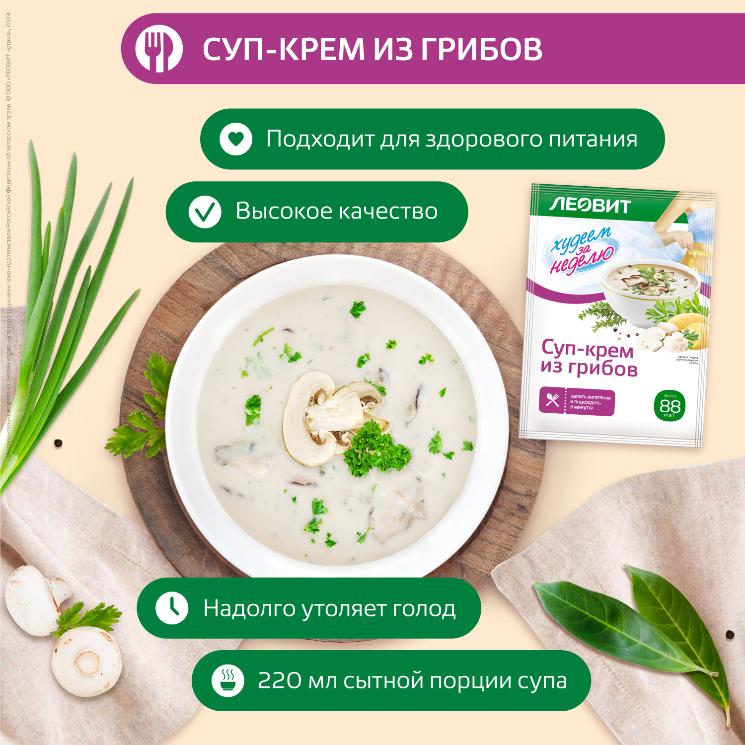 Леовит Худеем за Неделю Суп-крем из грибов диетический. Упаковка 20 шт. по 20 г. интересное: