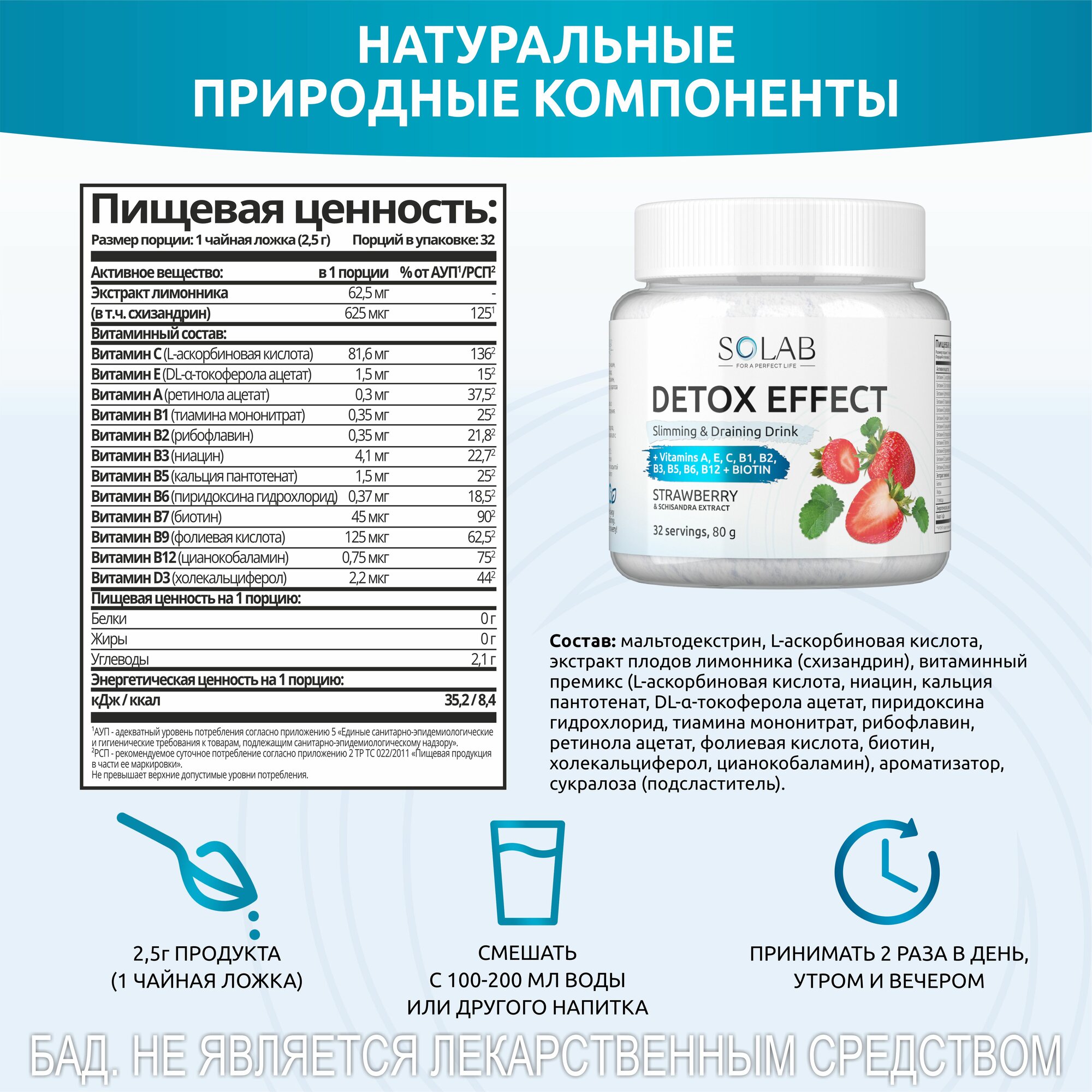 1WIN Detox Slim Effect / Напиток дренажный Детокс Слим с экстрактом Лимонника, Вкус Клубника, 32 порции средство для похудения и снятия отеков