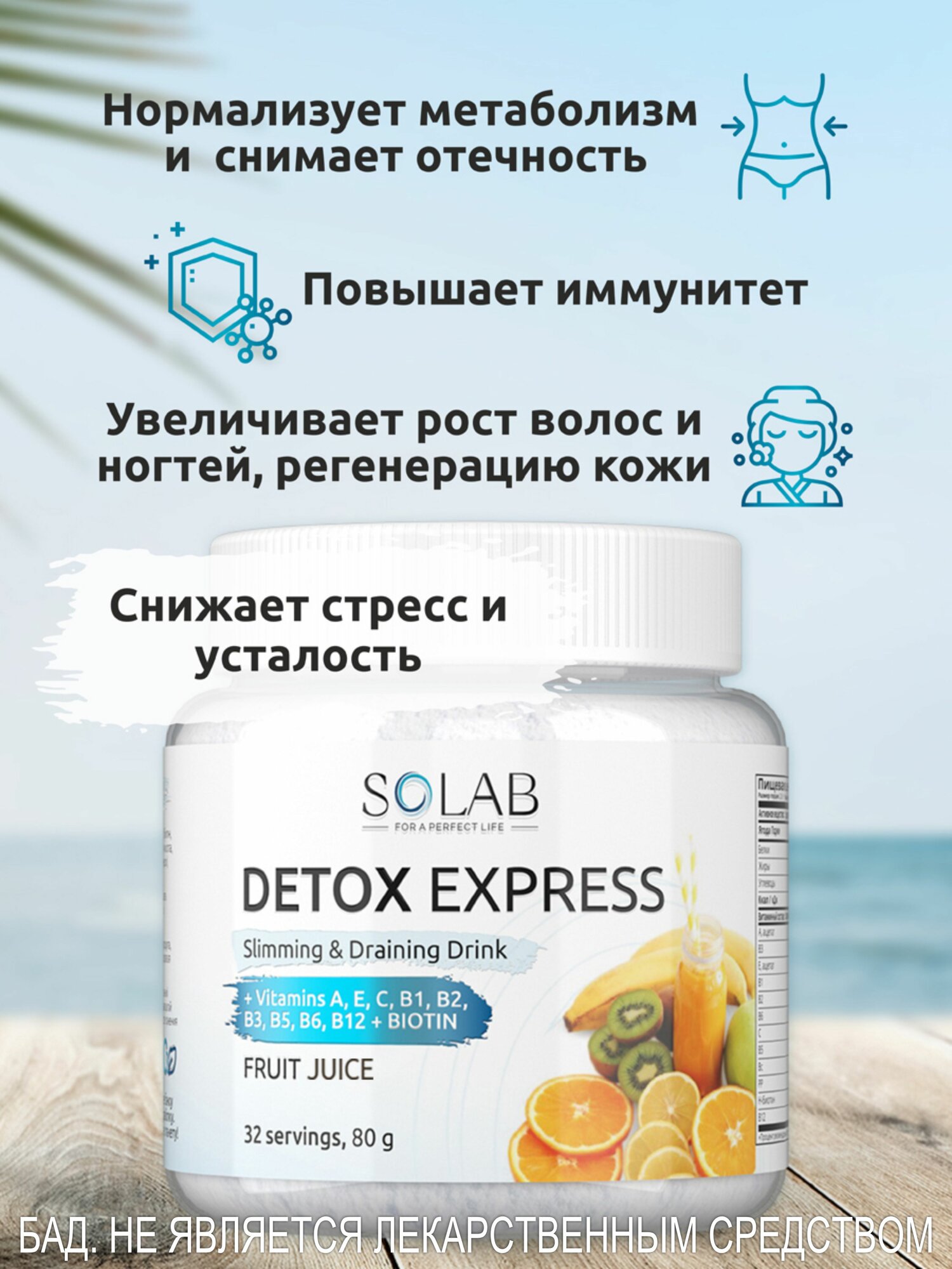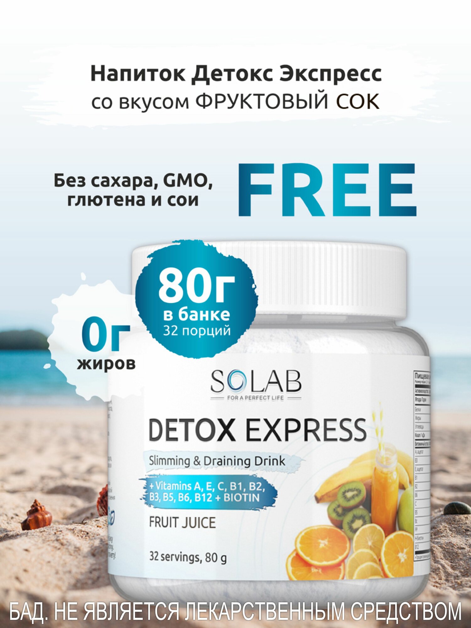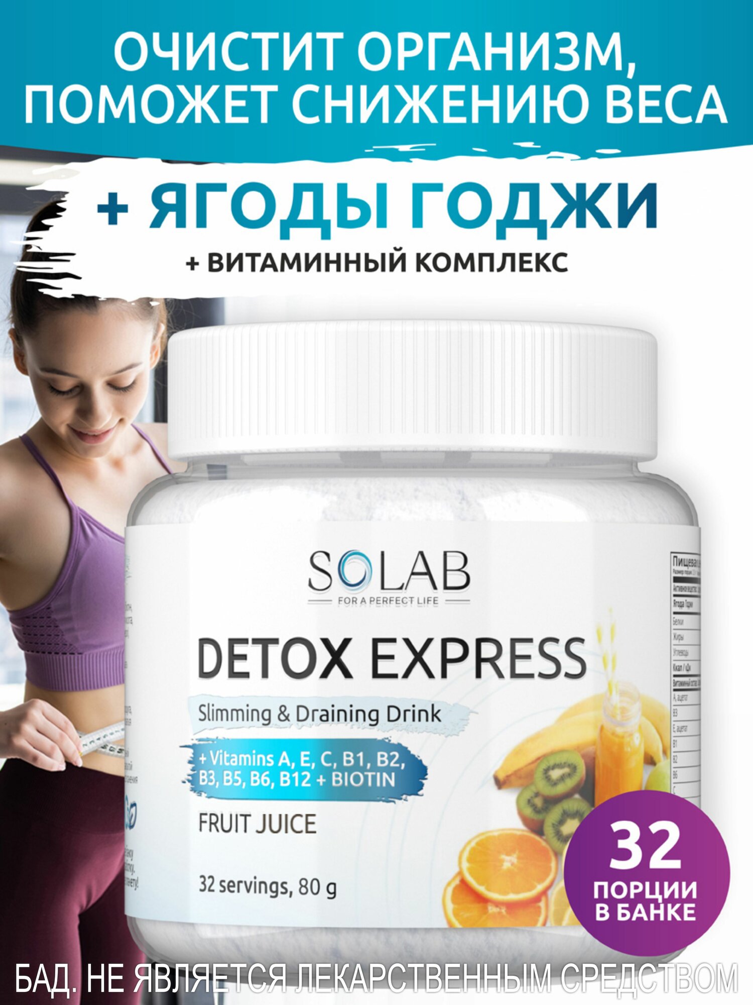 SOLAB Детокс коктейль для похудения антиоксидантный с ягодой годжи / дренажный чай с эффектом экспресс очищения, 32 порции, тропический вкус