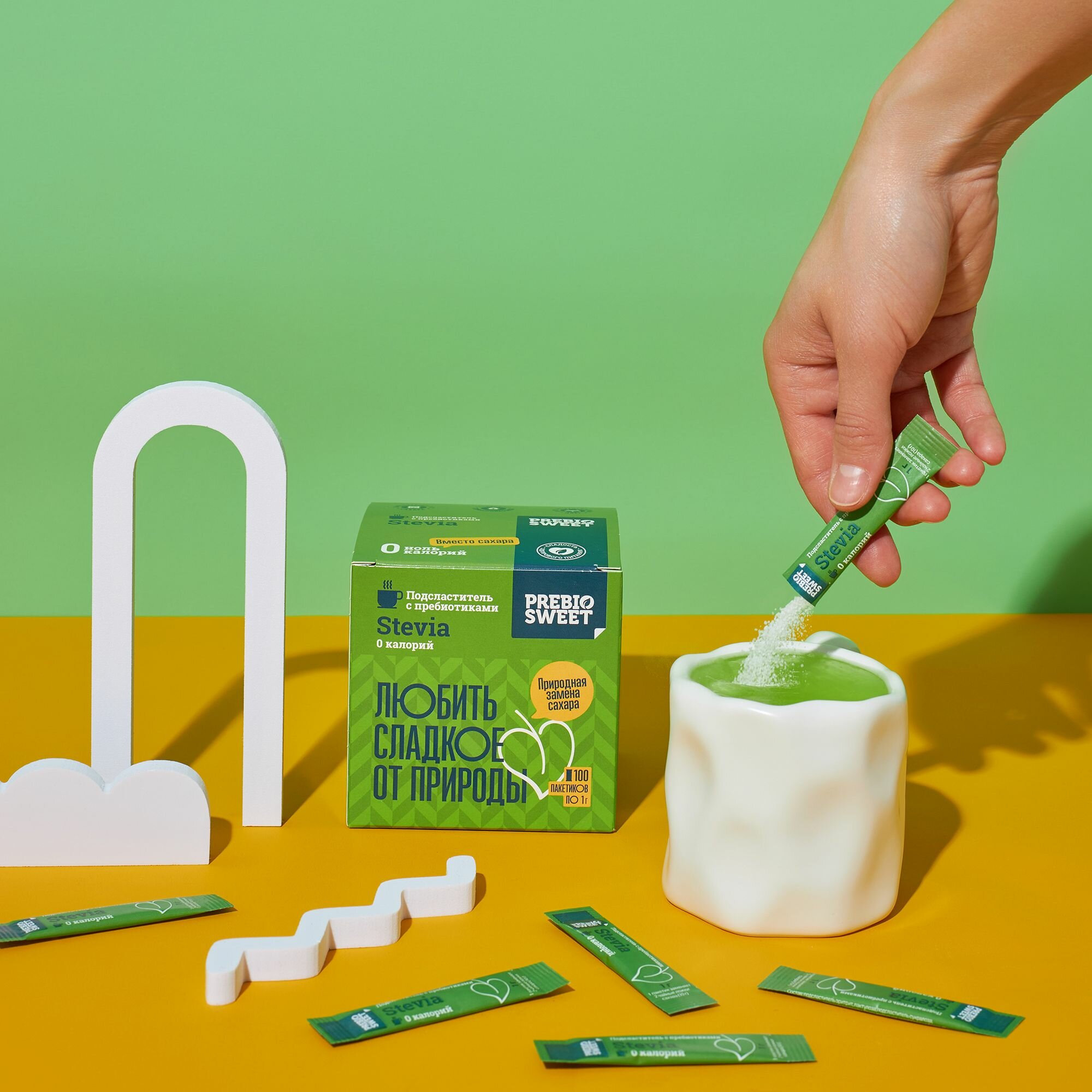 Сахарозаменитель Пребиосвит Стевия (Prebiosweet Stevia) в стиках, 100 г. интересное: