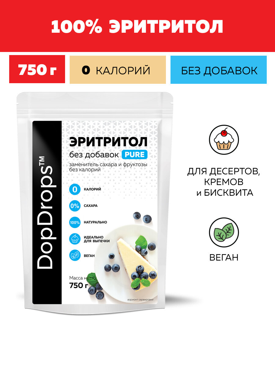 Натуральный сахарозаменитель DopDrops Эритритол (Эритрит) PURE, 70% от сладости сахара, 750 г интересное: