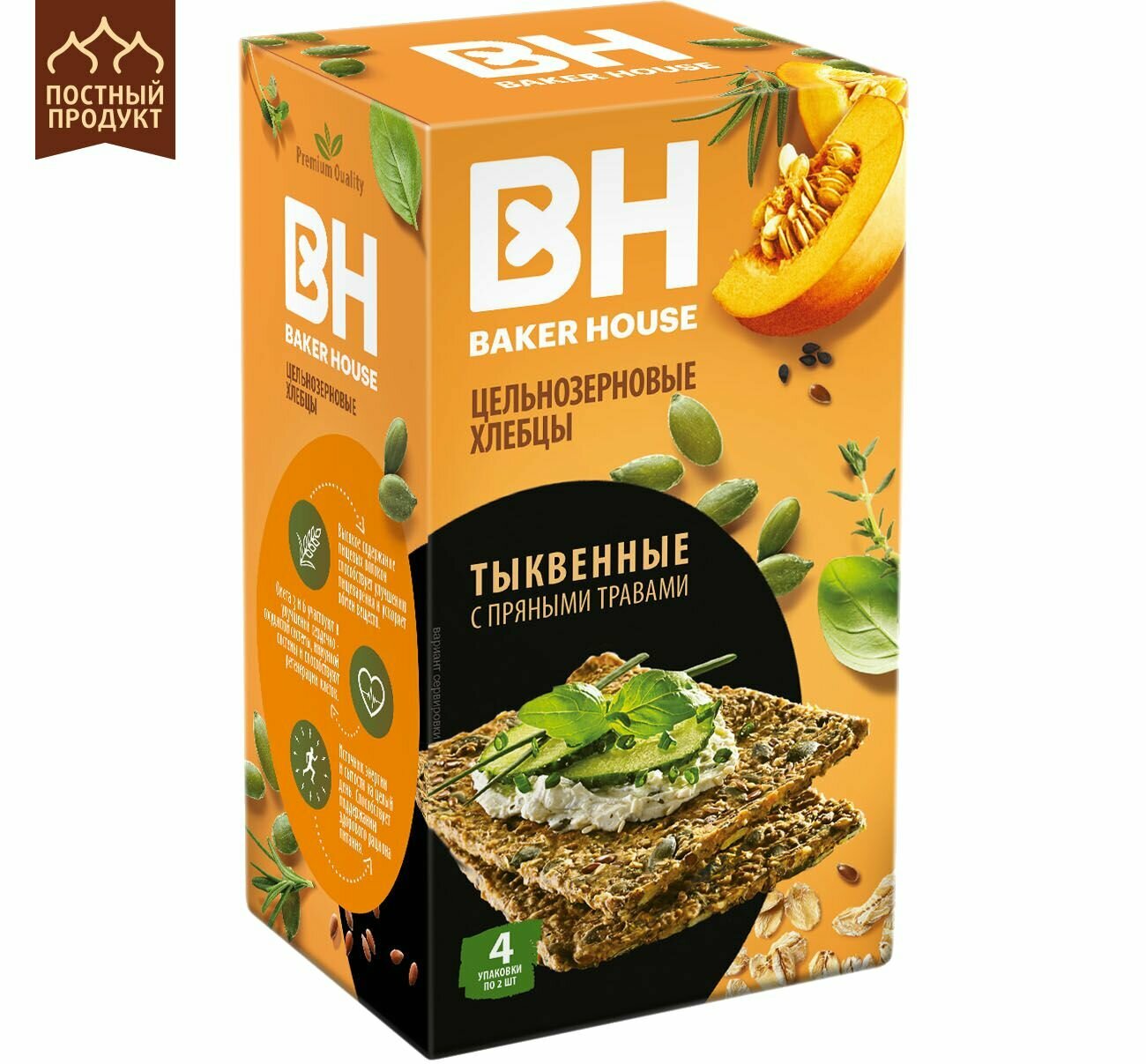 Купить Хлебцы Baker House Скандинавские цельнозерновые тыквенные с пряными травами 180 г