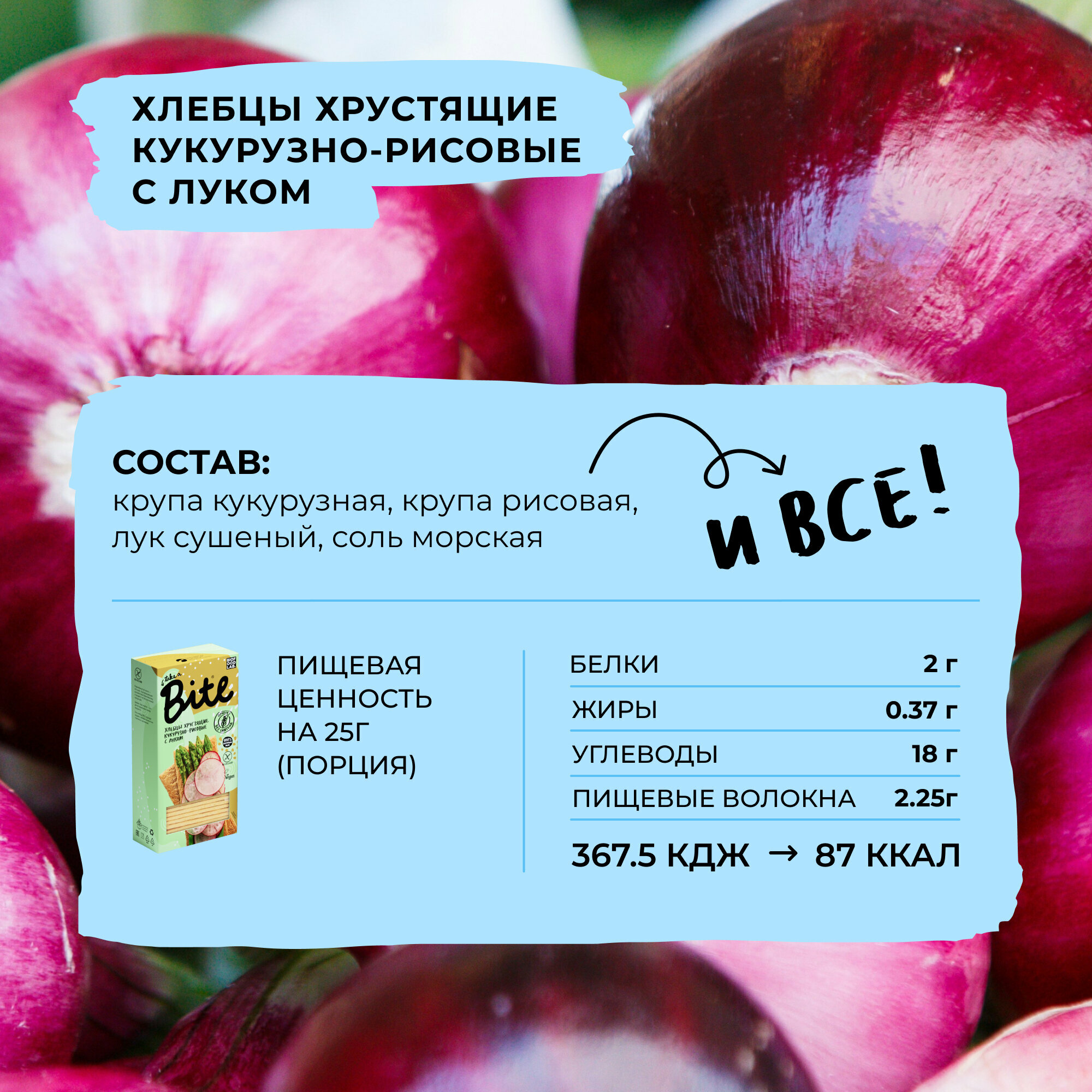 Хлебцы без глютена Take a Bite, кукурузно-рисовые с луком, 8 шт по 150 гр