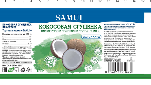 Кокосовая сгущёнка без сахара SAMUI 180г интересное: