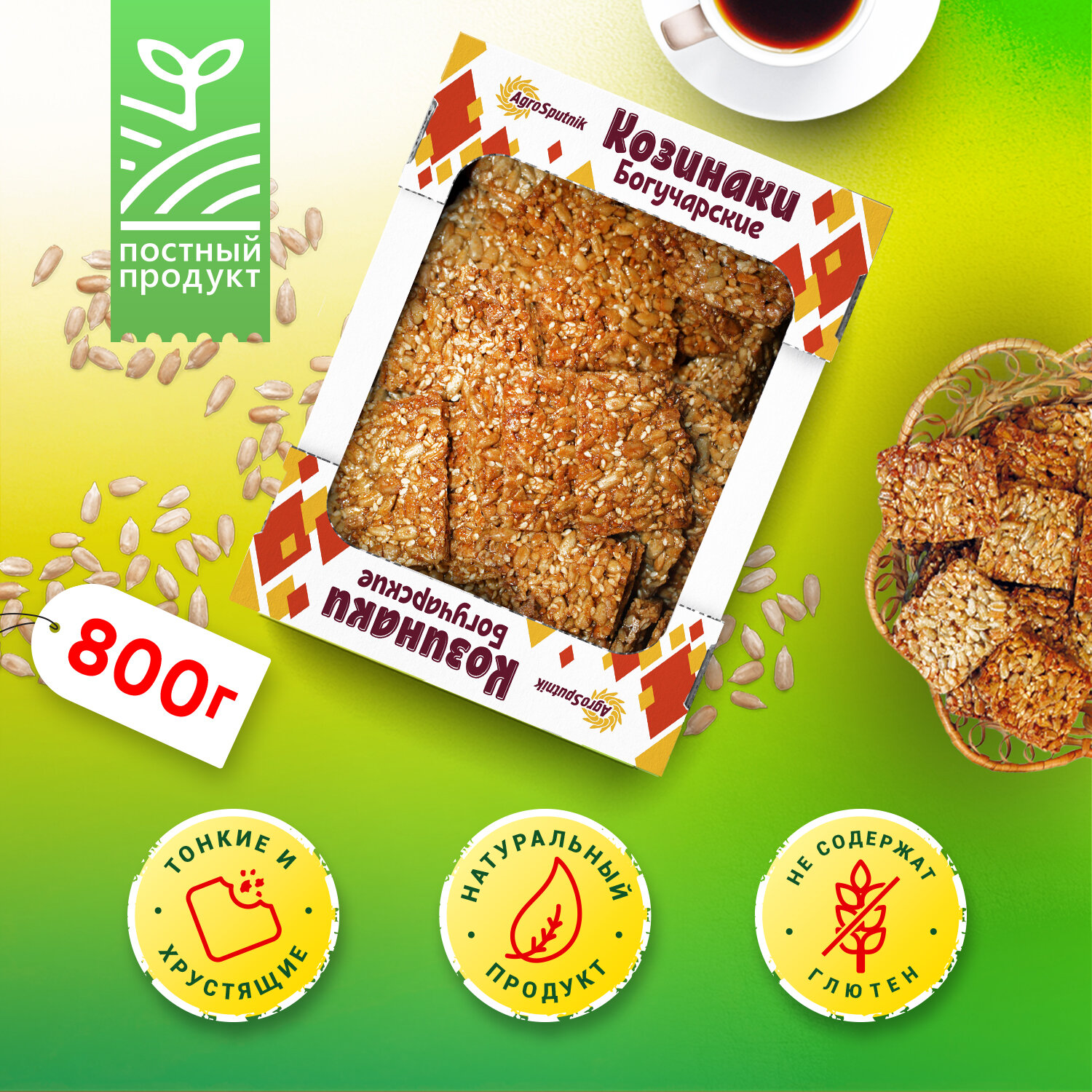 Козинаки "богучарские" на основе семян подсолнечника и кунжута 800 грамм интересное:
