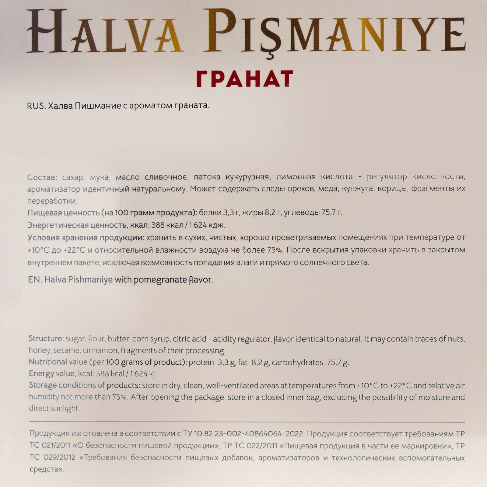 | Тип халвы | пишмание |