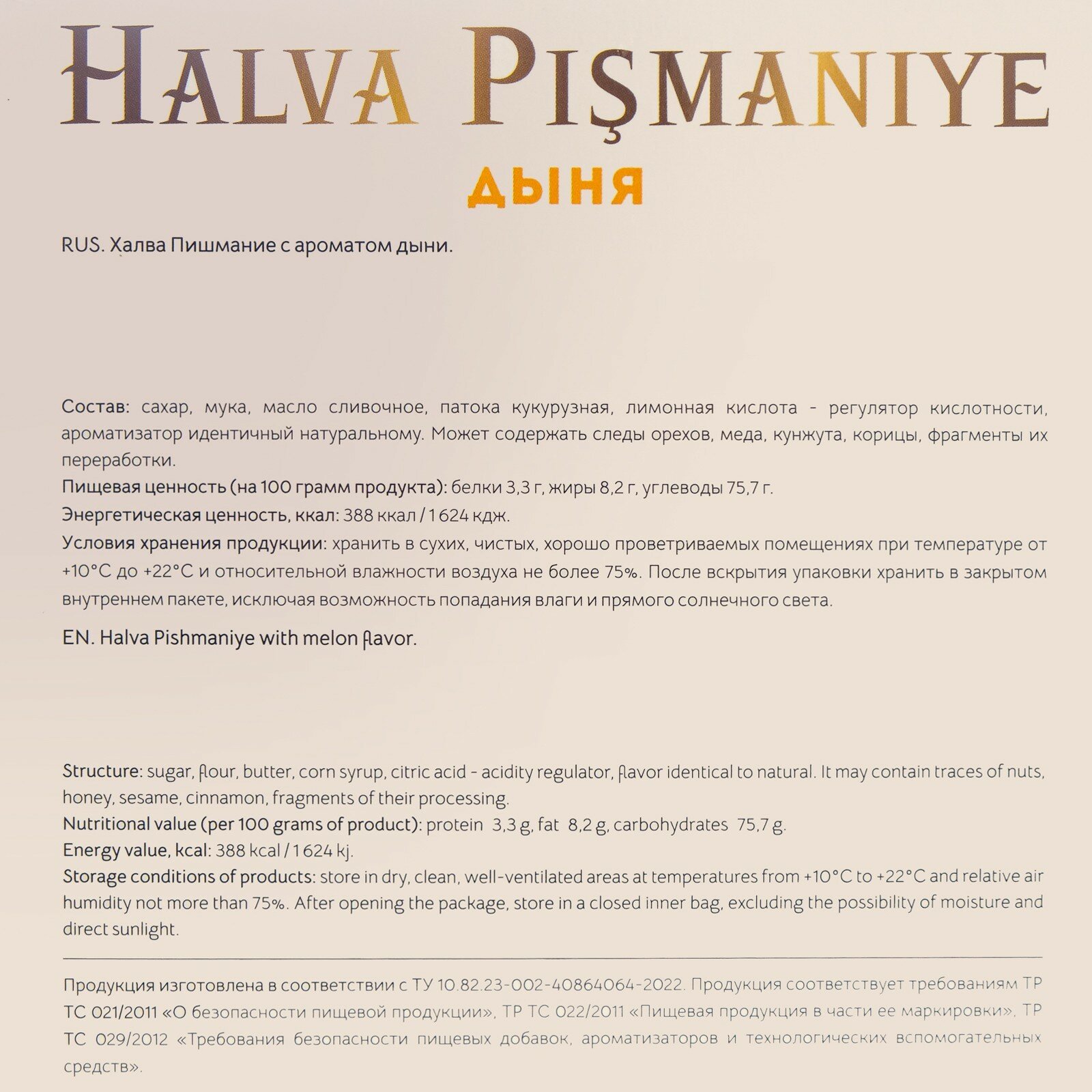 | Тип халвы | пишмание |