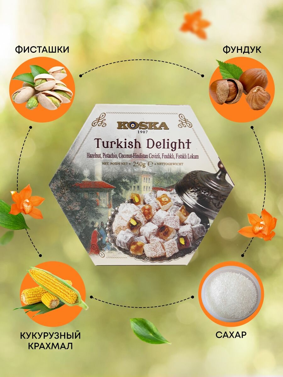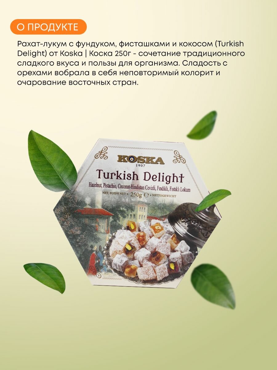 "Рахат-лукум с фундуком, фисташками и кокосом, Koska, 250 г" интересное: