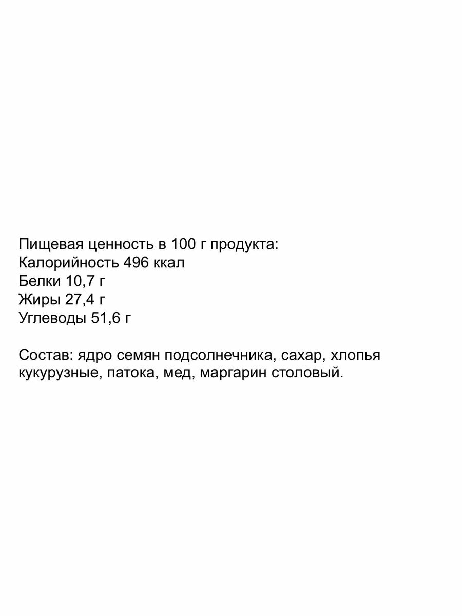 Козинаки из подсол тверк с медом и кукурузными хлопьями 500г
