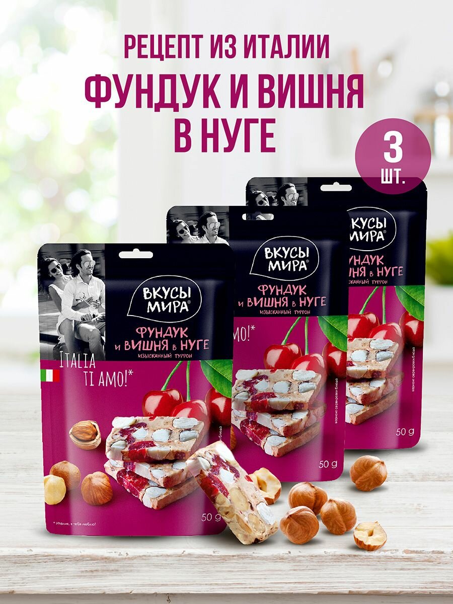 Туррон нуга с фундуком и вишней 50 г с орехами в наборе 3 шт интересное: