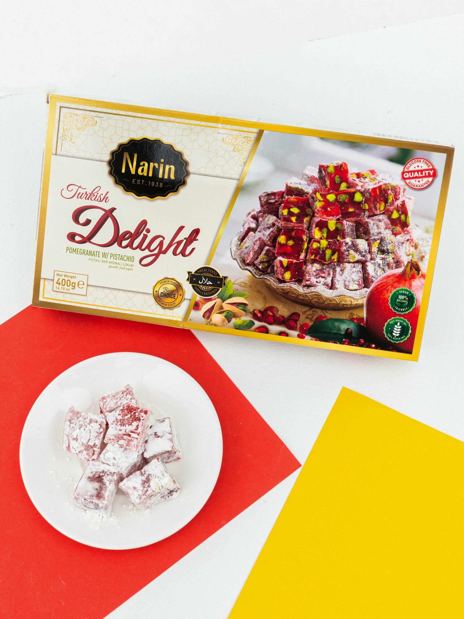 | Состав | сахар; вода; кукурузный крахмал; лимонная кислота; натуральный ароматизатор граната; фисташки |