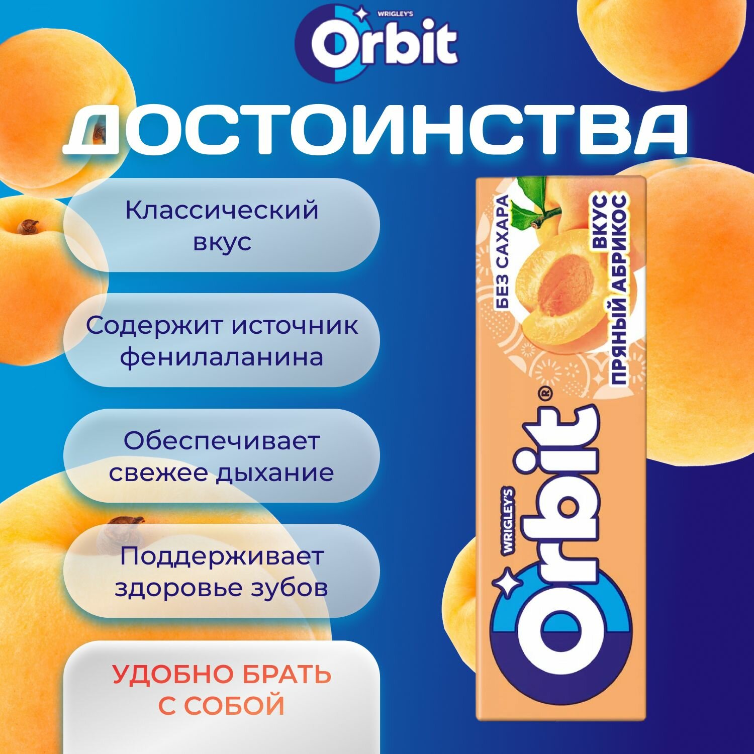 СохранитьЖевательная резинка ORBIT Без сахара со вкусом "Прянный Абрикос" 30 шт. х 13.6 гр. Большая упаковка интересное: