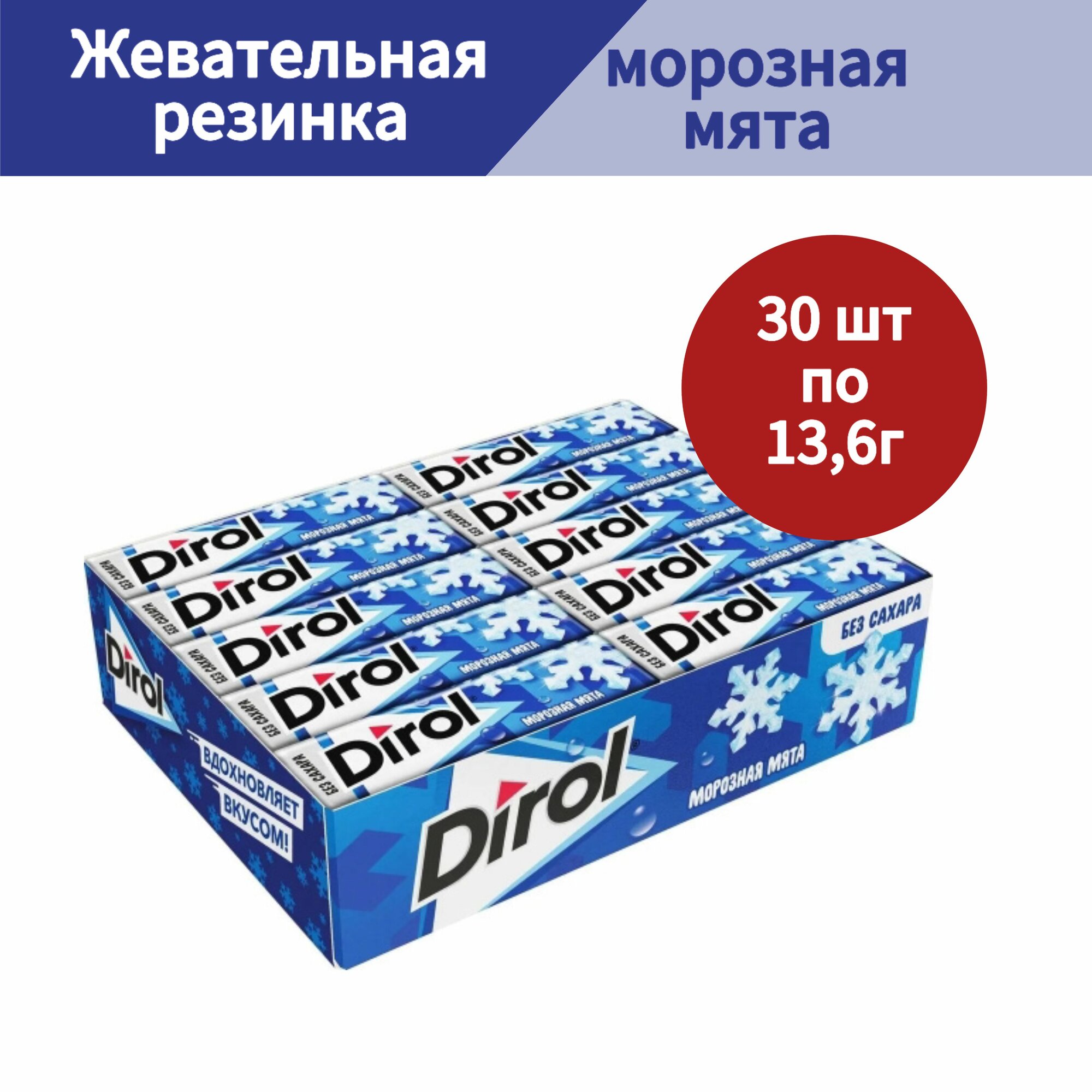 Жевательная резинка Дирол Морозная Мята, 30 шт.*13,6г, без сахара