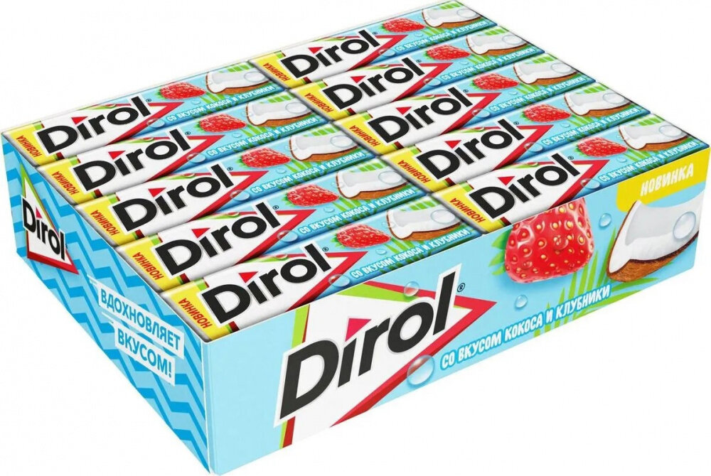 Купить Dirol Кокос и Клубника жевательная резинка 13,6г 30шт