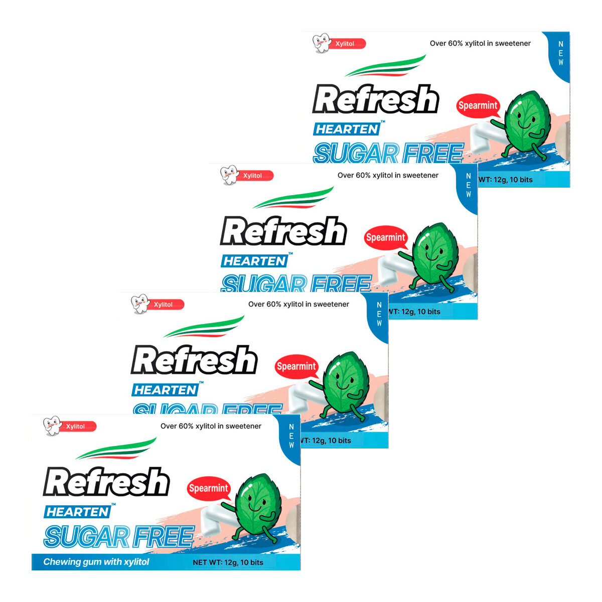 Купить Жевательная резинка с ксилитом без сахара со вкусом мяты Refresh, 12 г х 4 шт