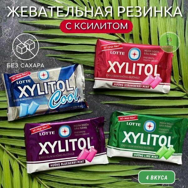 Жевательная резинка без сахара XYLITOL Клубника, Черника, Лайм, Освежающая мята (набор 4 вкуса)